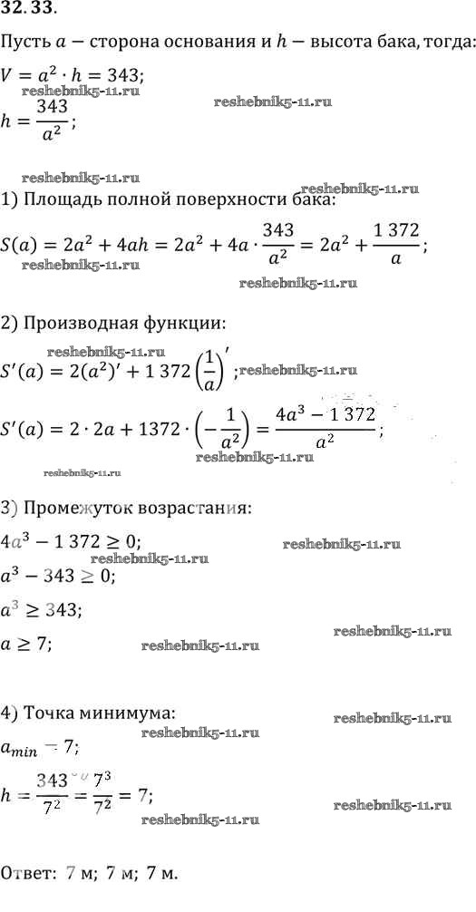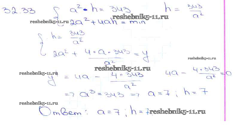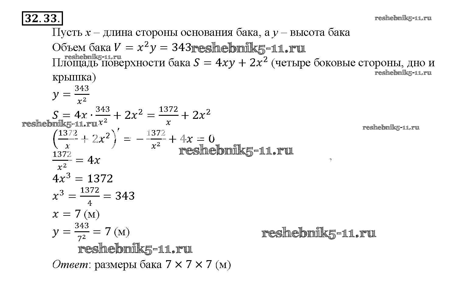 Готовая домашняя работа с ответами по Алгебре за 10, 11 класс Мордкович, Денищева, Корешкова, Мишустина, Семёнов, Тульчинская Задачник Базовый уровень Часть 2 Мнемозина 2015 ФГОС - §32. Применение производной для нахождения наибольших и наименьших значений величин 32. 33