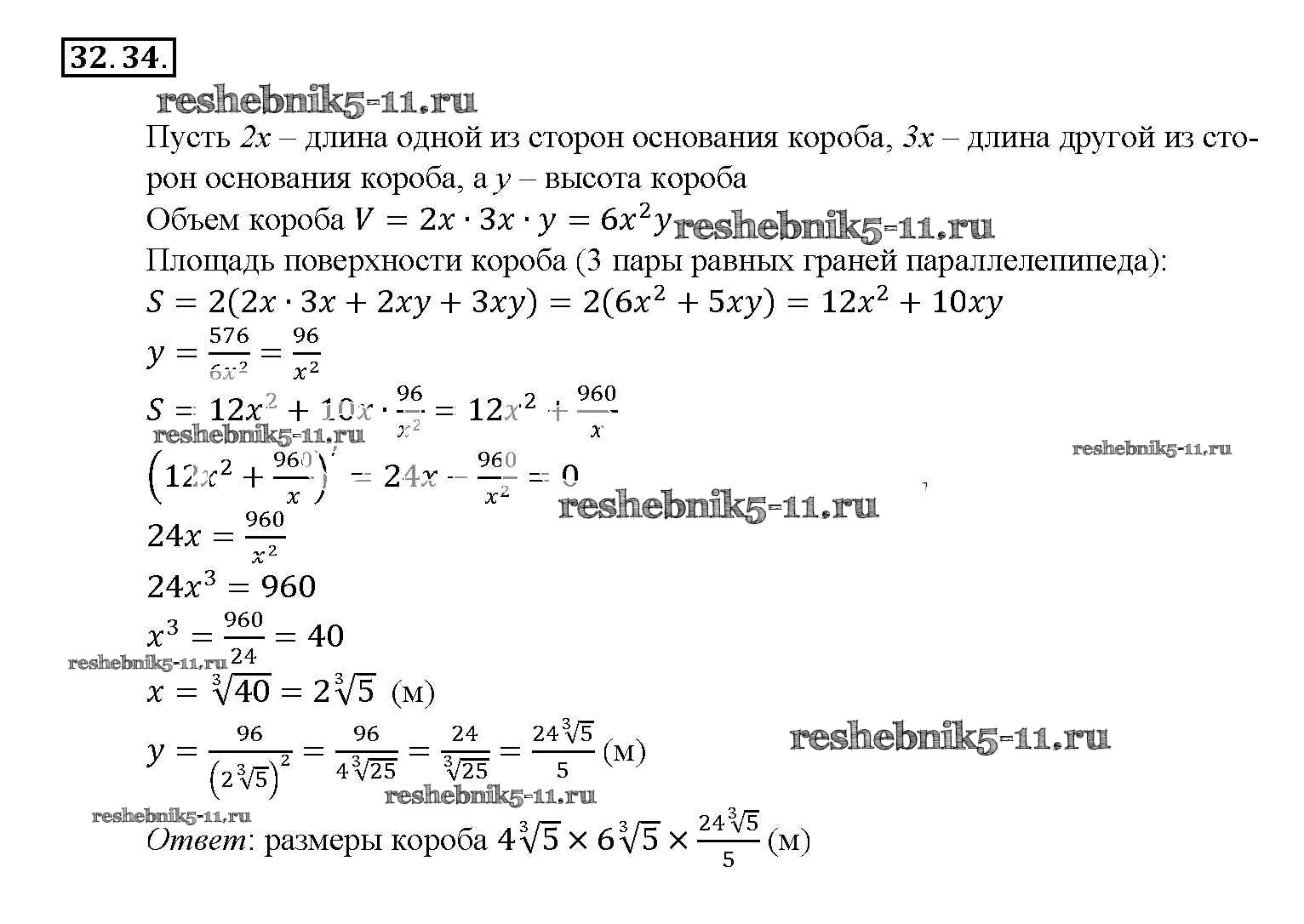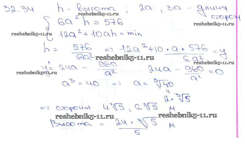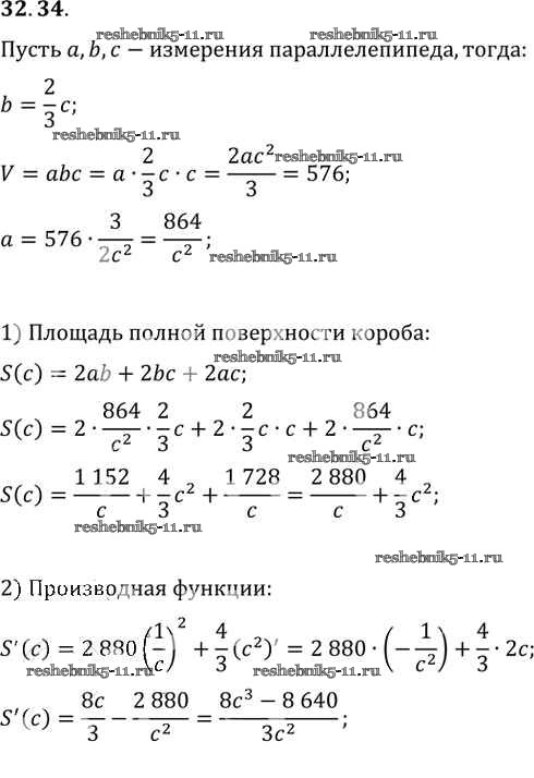 Готовая домашняя работа с ответами по Алгебре за 10, 11 класс Мордкович, Денищева, Корешкова, Мишустина, Семёнов, Тульчинская Задачник Базовый уровень Часть 2 Мнемозина 2015 ФГОС - §32. Применение производной для нахождения наибольших и наименьших значений величин 32. 34