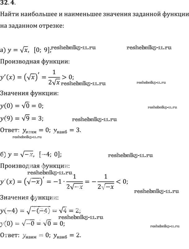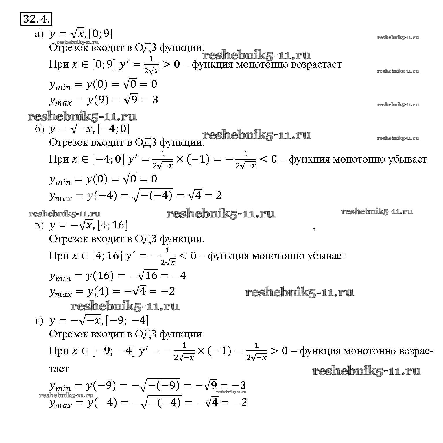 Готовая домашняя работа с ответами по Алгебре за 10, 11 класс Мордкович, Денищева, Корешкова, Мишустина, Семёнов, Тульчинская Задачник Базовый уровень Часть 2 Мнемозина 2015 ФГОС - §32. Применение производной для нахождения наибольших и наименьших значений величин 32. 4