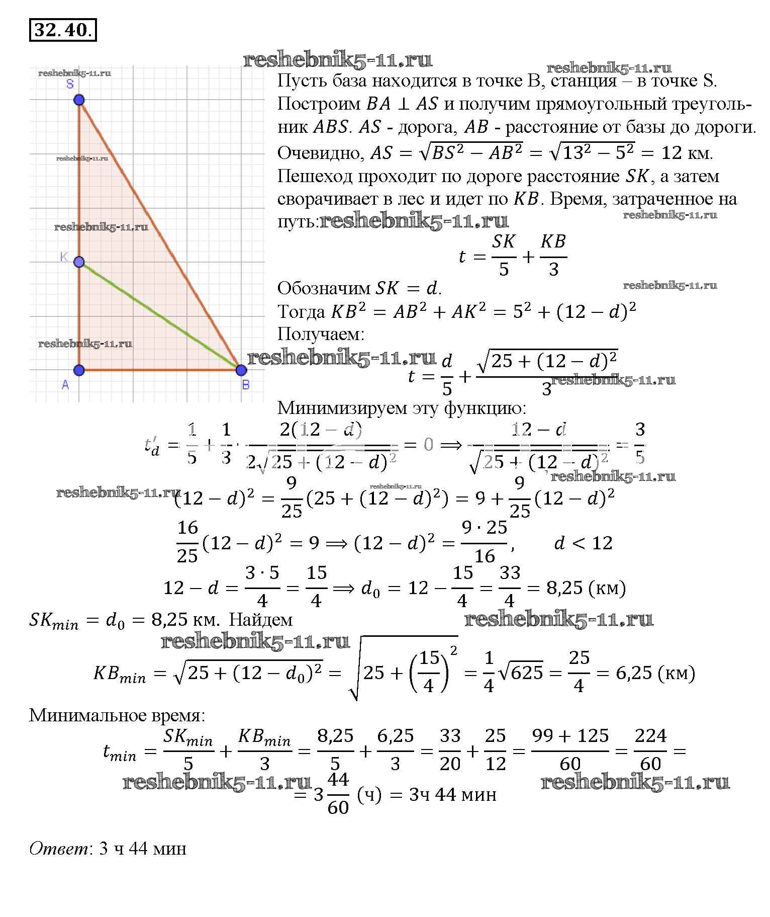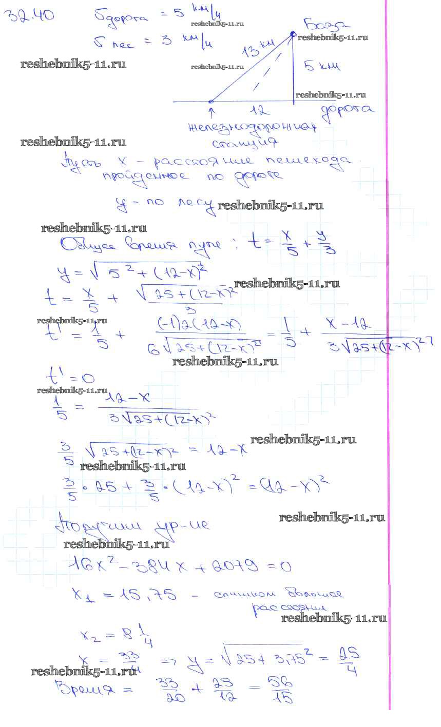 Готовая домашняя работа с ответами по Алгебре за 10, 11 класс Мордкович, Денищева, Корешкова, Мишустина, Семёнов, Тульчинская Задачник Базовый уровень Часть 2 Мнемозина 2015 ФГОС - §32. Применение производной для нахождения наибольших и наименьших значений величин 32. 40