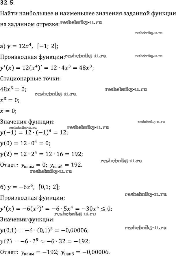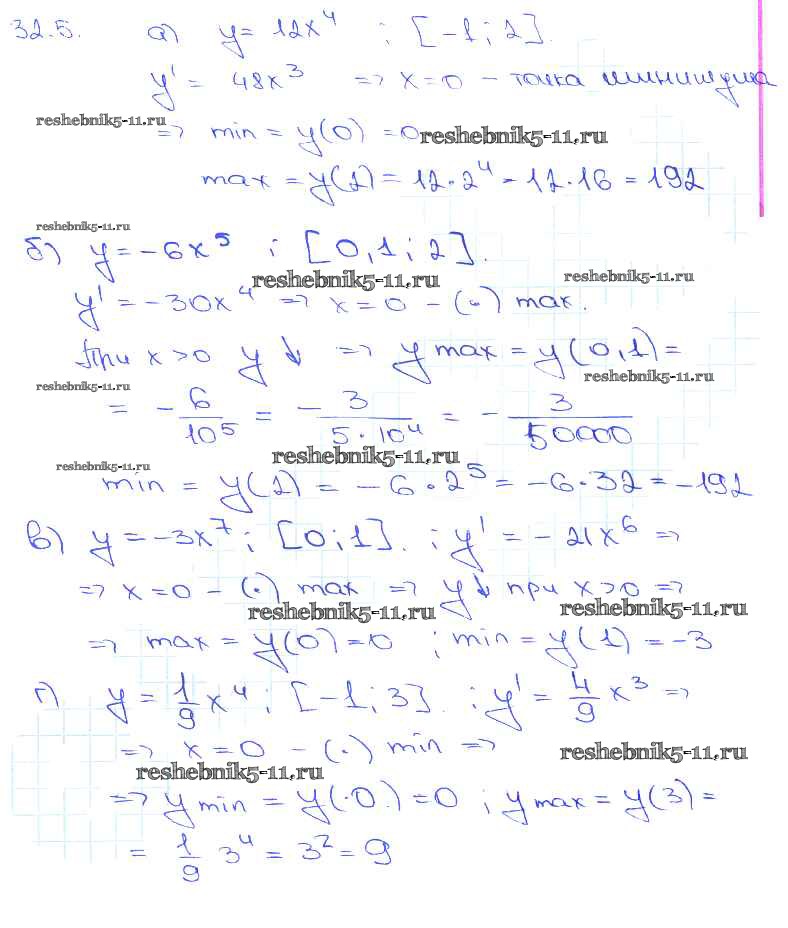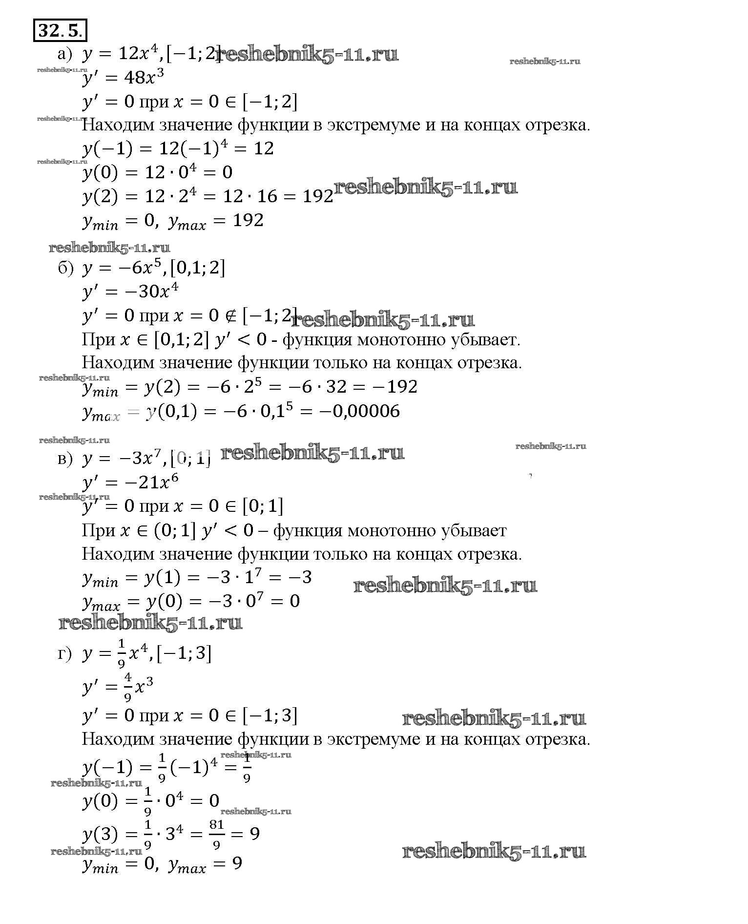 Готовая домашняя работа с ответами по Алгебре за 10, 11 класс Мордкович, Денищева, Корешкова, Мишустина, Семёнов, Тульчинская Задачник Базовый уровень Часть 2 Мнемозина 2015 ФГОС - §32. Применение производной для нахождения наибольших и наименьших значений величин 32. 5