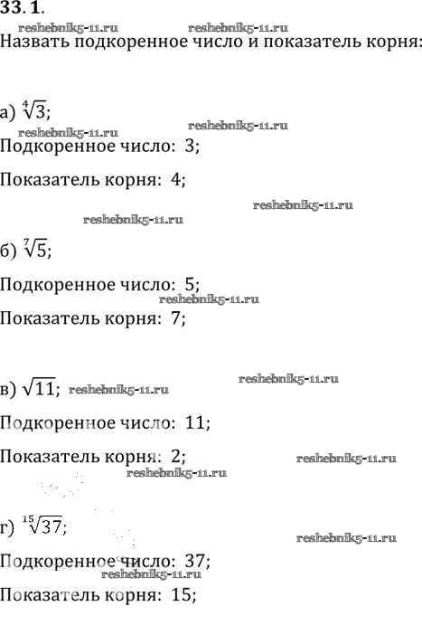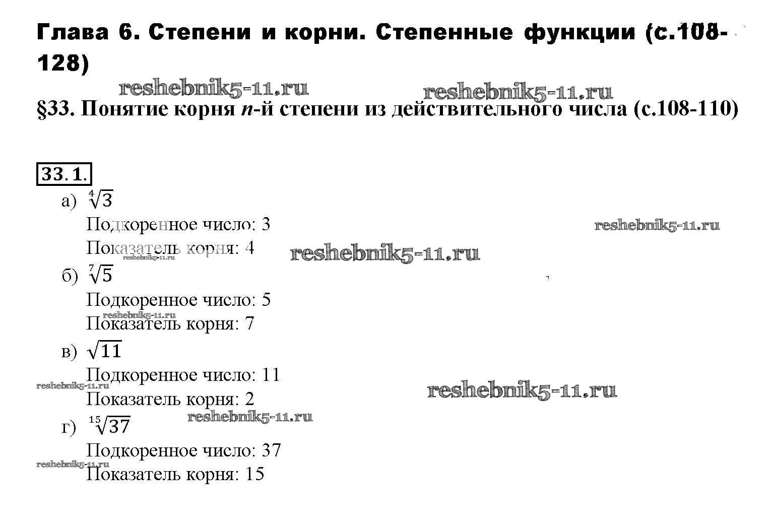 Готовая домашняя работа с ответами по Алгебре за 10, 11 класс Мордкович, Денищева, Корешкова, Мишустина, Семёнов, Тульчинская Задачник Базовый уровень Часть 2 Мнемозина 2015 ФГОС - §33. Понятие корня n-й степени из действительного числа 33. 1