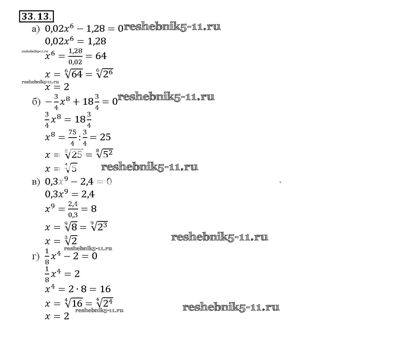 Готовая домашняя работа с ответами по Алгебре за 10, 11 класс Мордкович, Денищева, Корешкова, Мишустина, Семёнов, Тульчинская Задачник Базовый уровень Часть 2 Мнемозина 2015 ФГОС - §33. Понятие корня n-й степени из действительного числа 33. 13