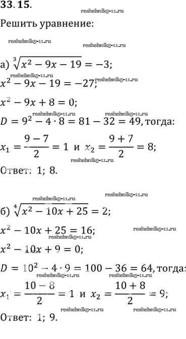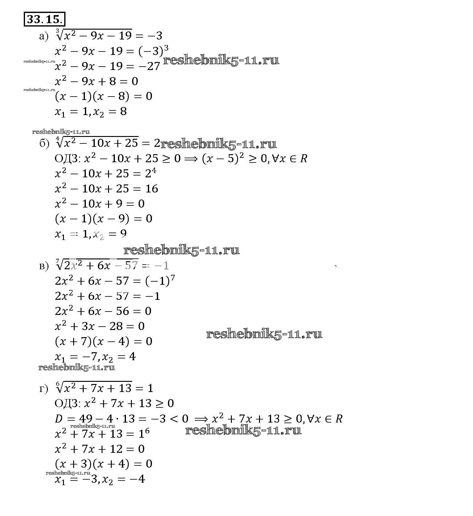 Готовая домашняя работа с ответами по Алгебре за 10, 11 класс Мордкович, Денищева, Корешкова, Мишустина, Семёнов, Тульчинская Задачник Базовый уровень Часть 2 Мнемозина 2015 ФГОС - §33. Понятие корня n-й степени из действительного числа 33. 15
