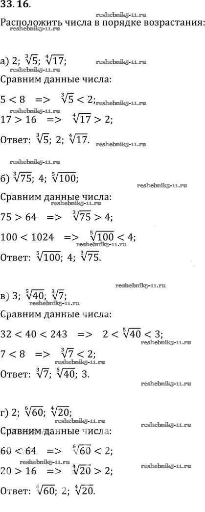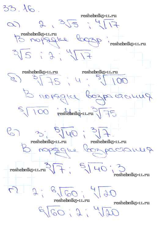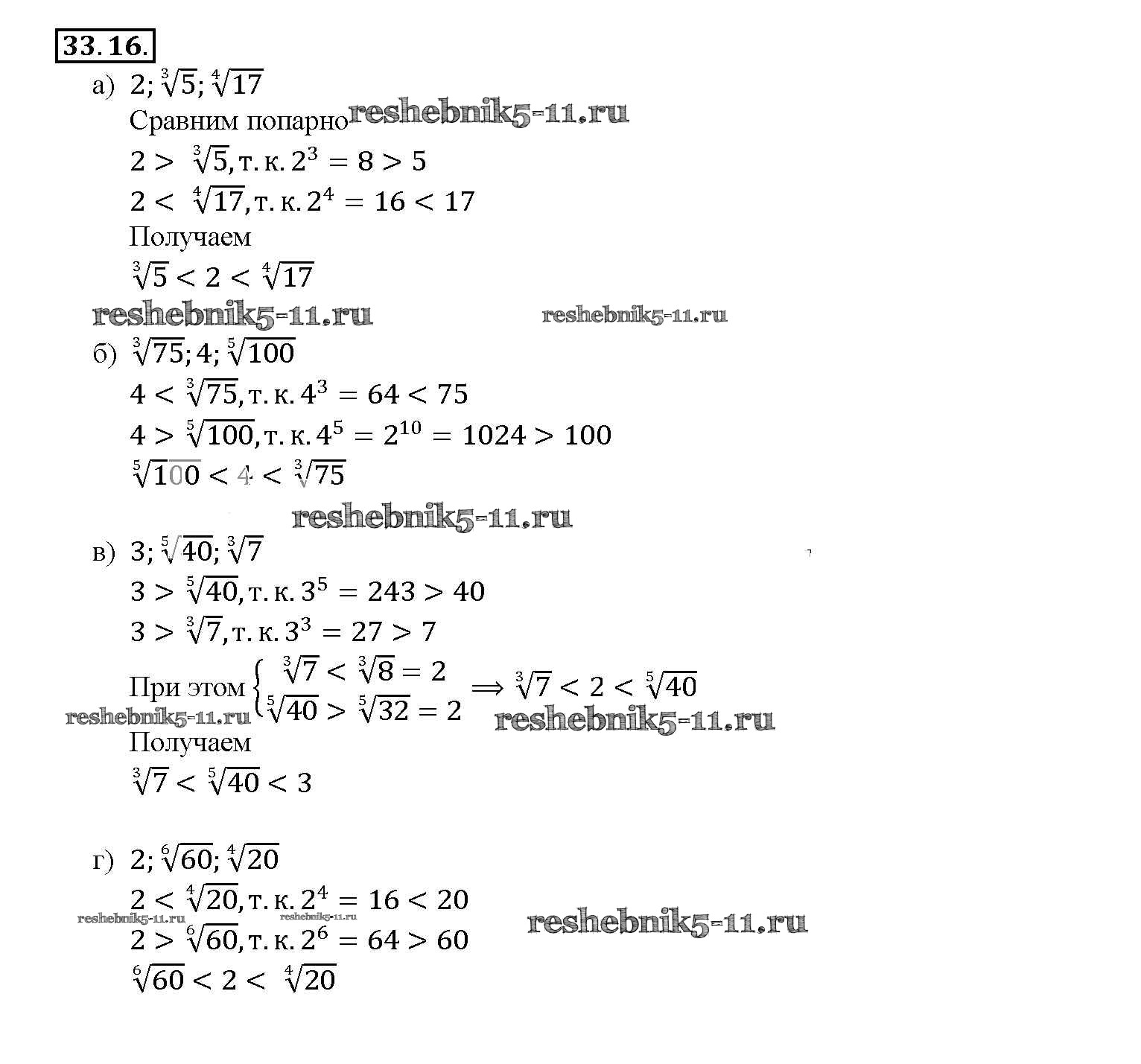 Готовая домашняя работа с ответами по Алгебре за 10, 11 класс Мордкович, Денищева, Корешкова, Мишустина, Семёнов, Тульчинская Задачник Базовый уровень Часть 2 Мнемозина 2015 ФГОС - §33. Понятие корня n-й степени из действительного числа 33. 16