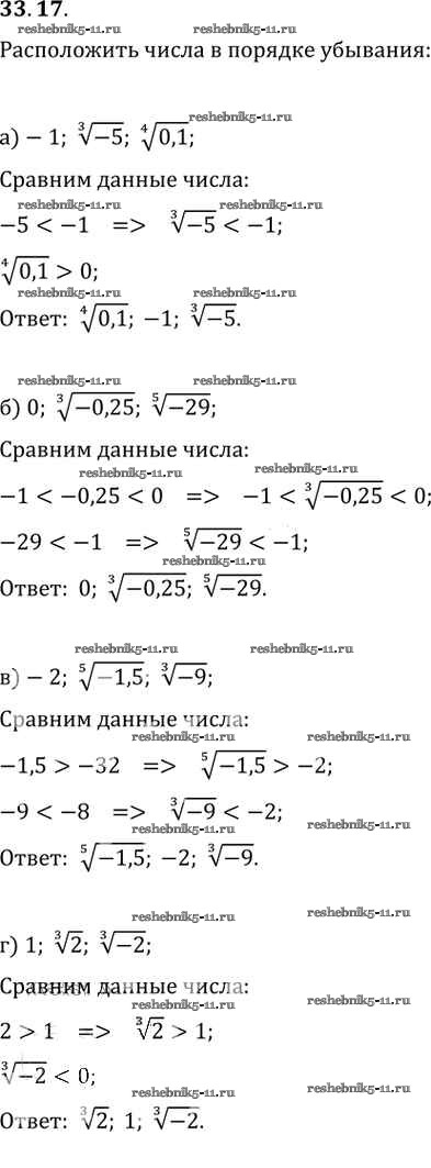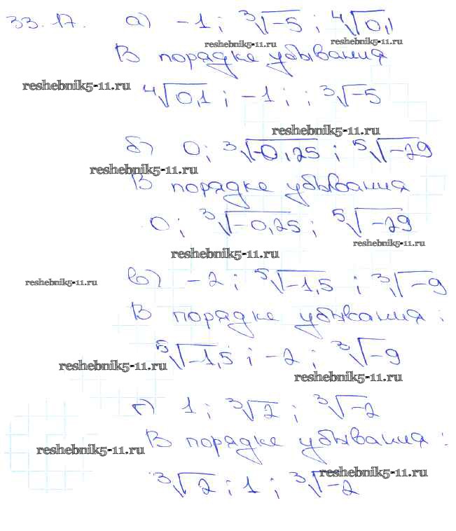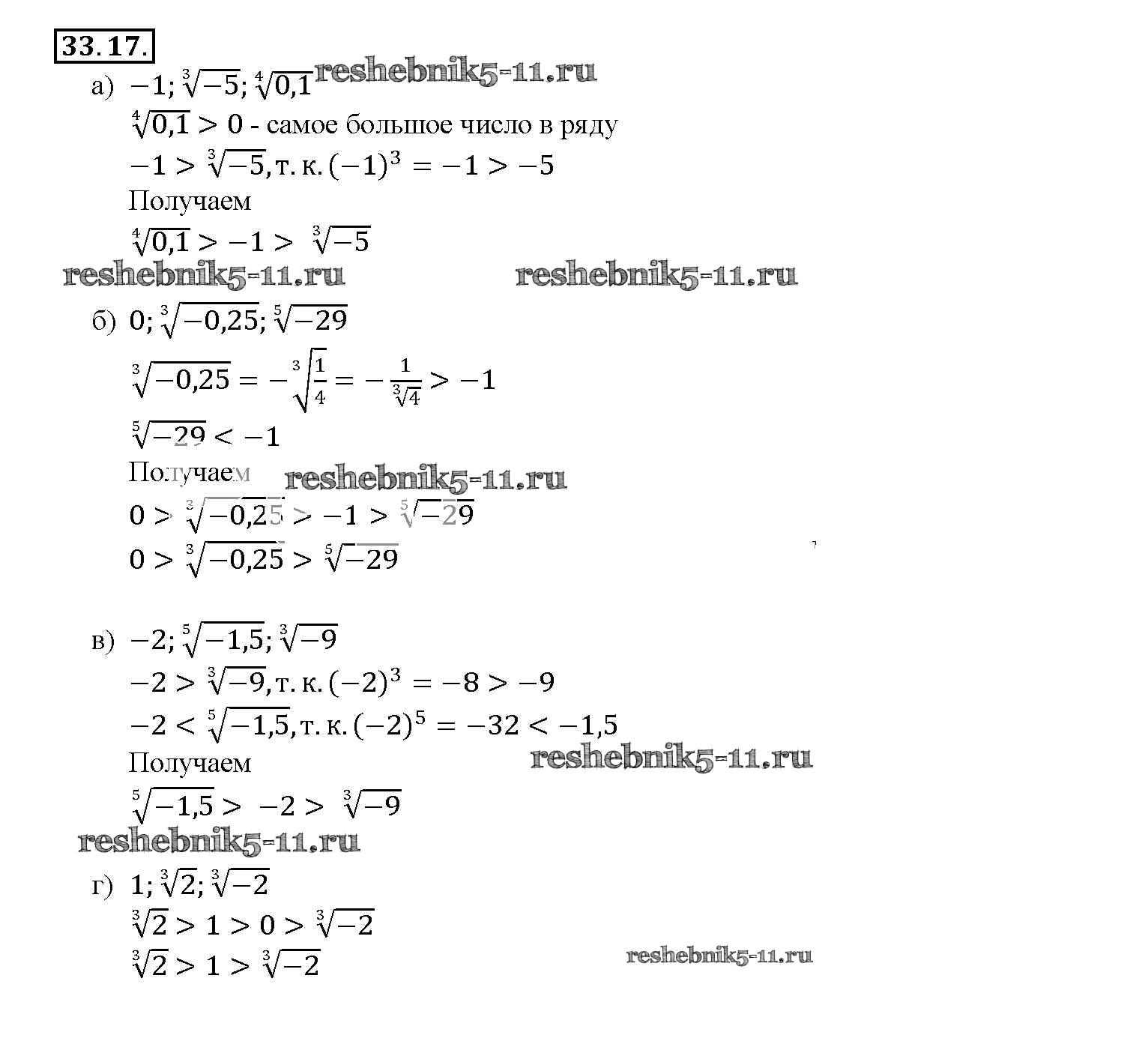 Готовая домашняя работа с ответами по Алгебре за 10, 11 класс Мордкович, Денищева, Корешкова, Мишустина, Семёнов, Тульчинская Задачник Базовый уровень Часть 2 Мнемозина 2015 ФГОС - §33. Понятие корня n-й степени из действительного числа 33. 17