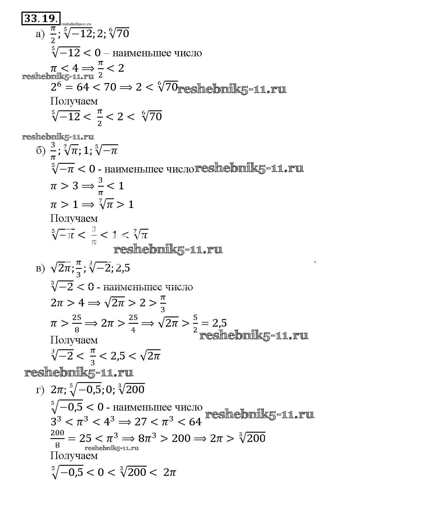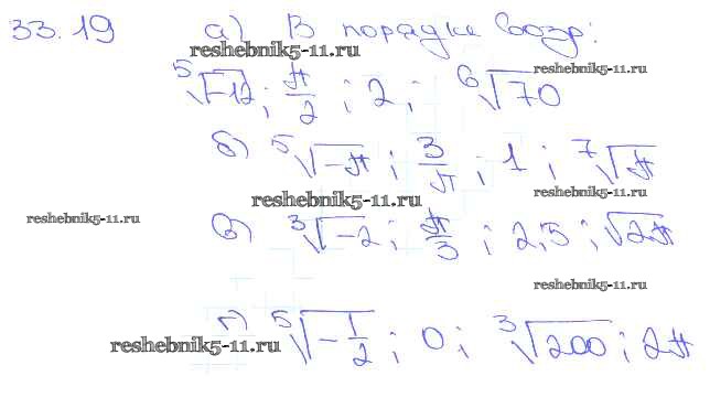 Готовая домашняя работа с ответами по Алгебре за 10, 11 класс Мордкович, Денищева, Корешкова, Мишустина, Семёнов, Тульчинская Задачник Базовый уровень Часть 2 Мнемозина 2015 ФГОС - §33. Понятие корня n-й степени из действительного числа 33. 19