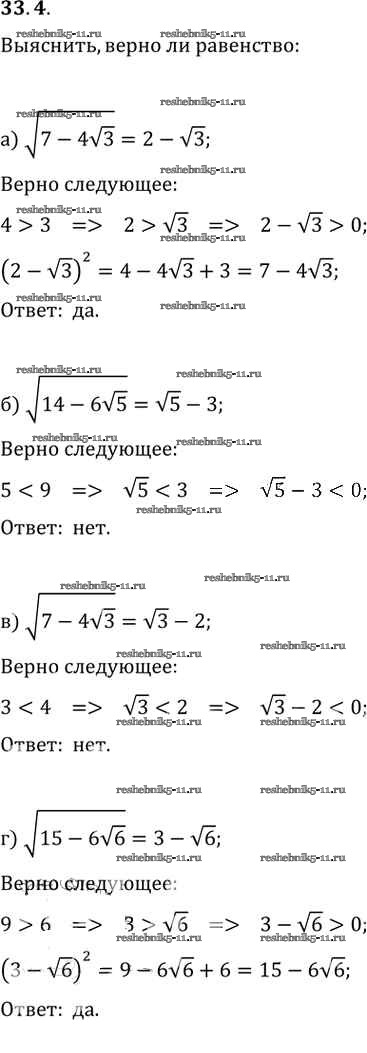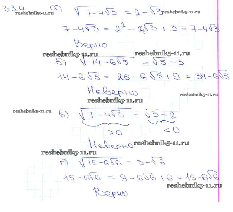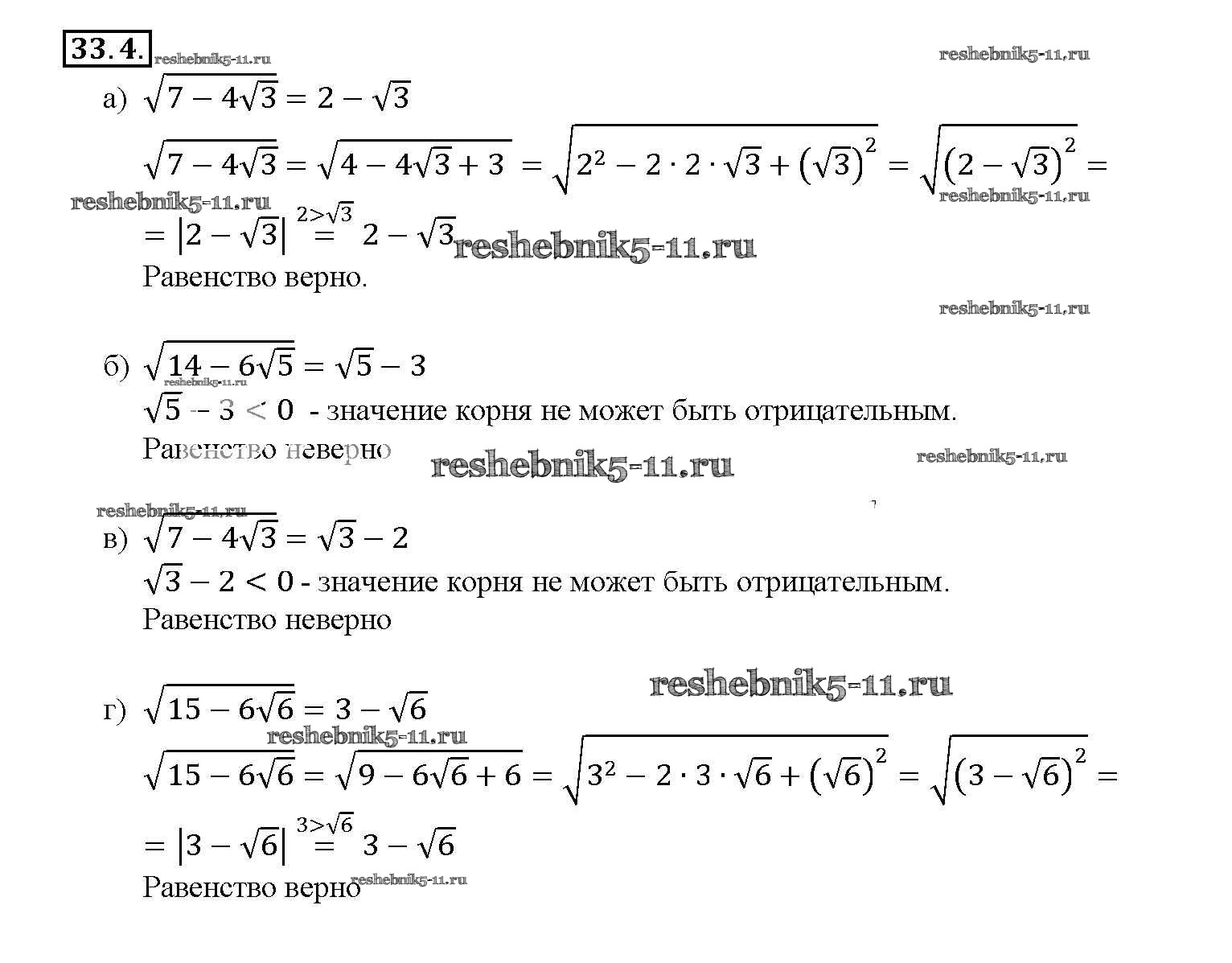 Готовая домашняя работа с ответами по Алгебре за 10, 11 класс Мордкович, Денищева, Корешкова, Мишустина, Семёнов, Тульчинская Задачник Базовый уровень Часть 2 Мнемозина 2015 ФГОС - §33. Понятие корня n-й степени из действительного числа 33. 4