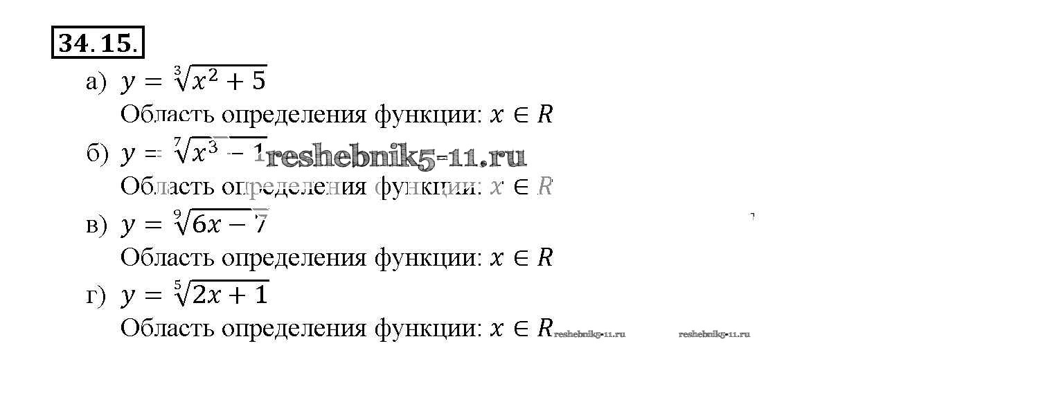 Готовая домашняя работа с ответами по Алгебре за 10, 11 класс Мордкович, Денищева, Корешкова, Мишустина, Семёнов, Тульчинская Задачник Базовый уровень Часть 2 Мнемозина 2015 ФГОС - §34. Функции y = ⁿ√x, их свойства и графики 34. 15