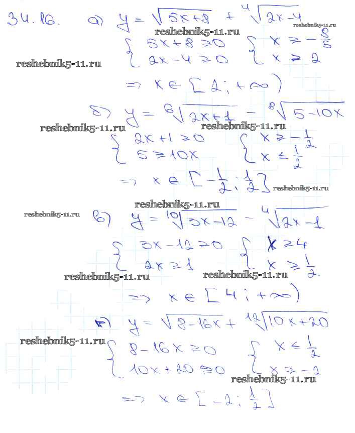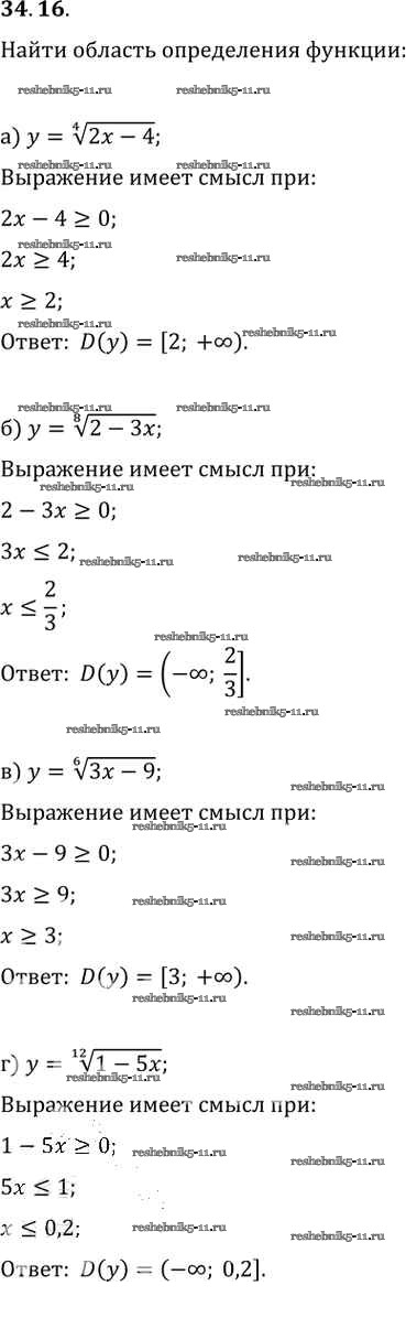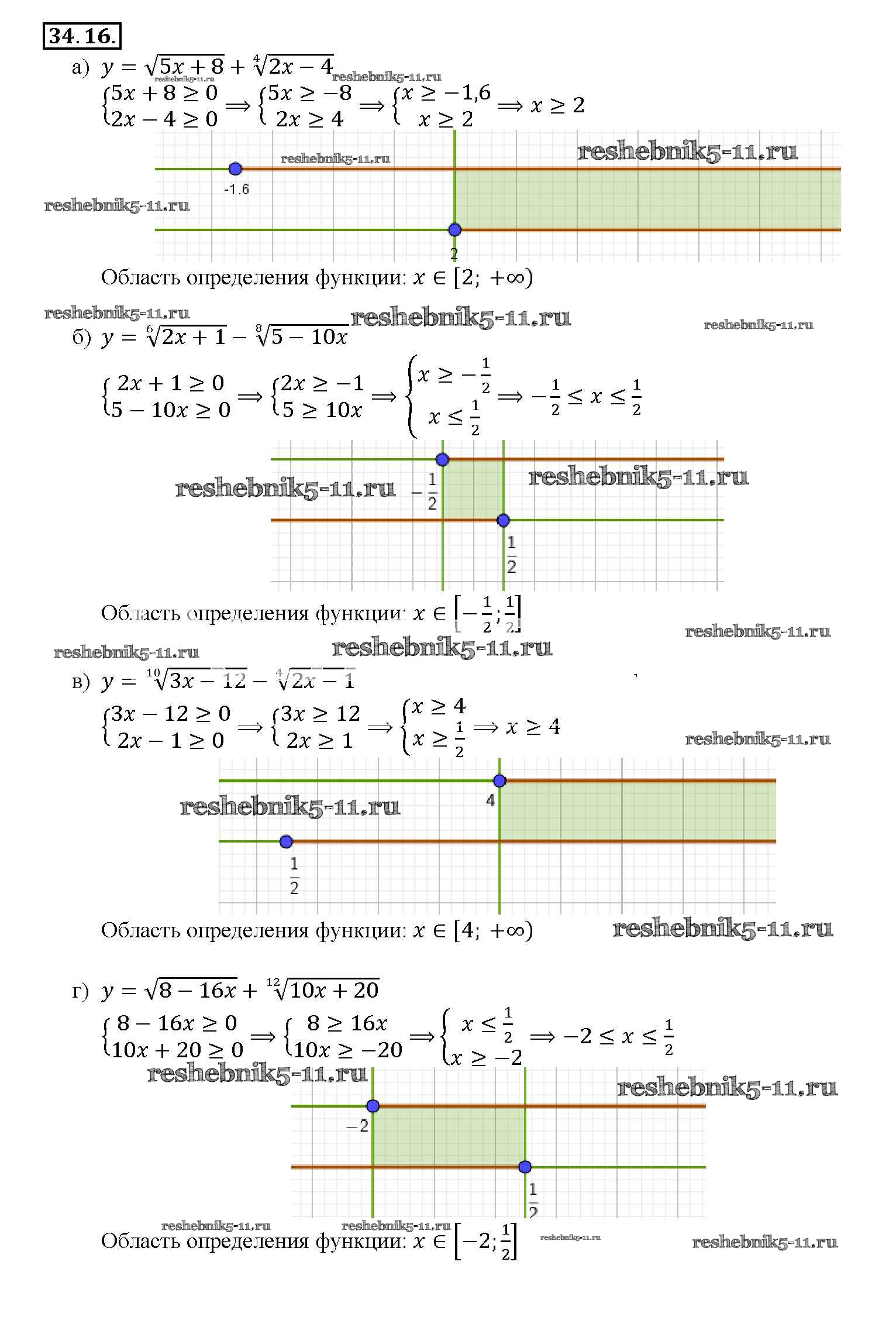 Готовая домашняя работа с ответами по Алгебре за 10, 11 класс Мордкович, Денищева, Корешкова, Мишустина, Семёнов, Тульчинская Задачник Базовый уровень Часть 2 Мнемозина 2015 ФГОС - §34. Функции y = ⁿ√x, их свойства и графики 34. 16