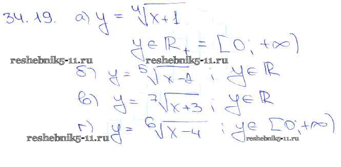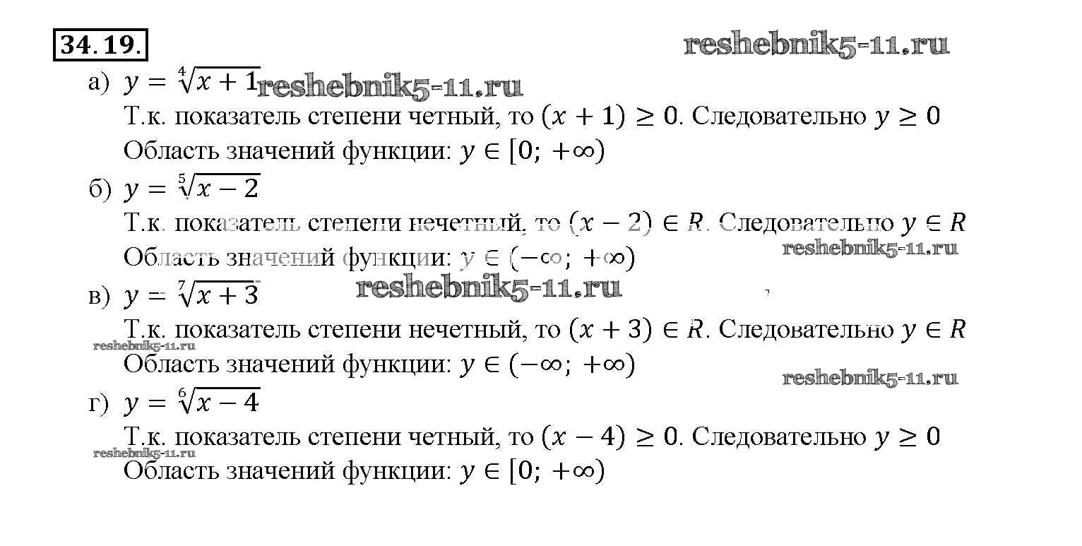 Готовая домашняя работа с ответами по Алгебре за 10, 11 класс Мордкович, Денищева, Корешкова, Мишустина, Семёнов, Тульчинская Задачник Базовый уровень Часть 2 Мнемозина 2015 ФГОС - §34. Функции y = ⁿ√x, их свойства и графики 34. 19