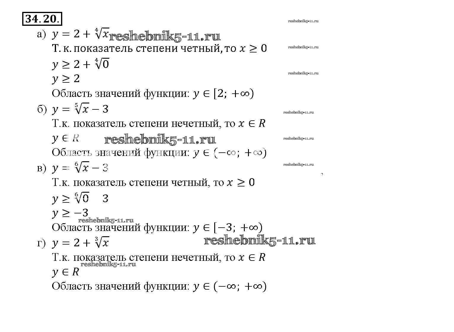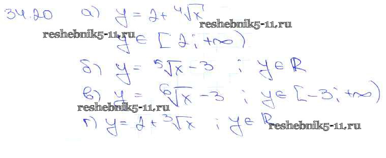 Готовая домашняя работа с ответами по Алгебре за 10, 11 класс Мордкович, Денищева, Корешкова, Мишустина, Семёнов, Тульчинская Задачник Базовый уровень Часть 2 Мнемозина 2015 ФГОС - §34. Функции y = ⁿ√x, их свойства и графики 34. 20