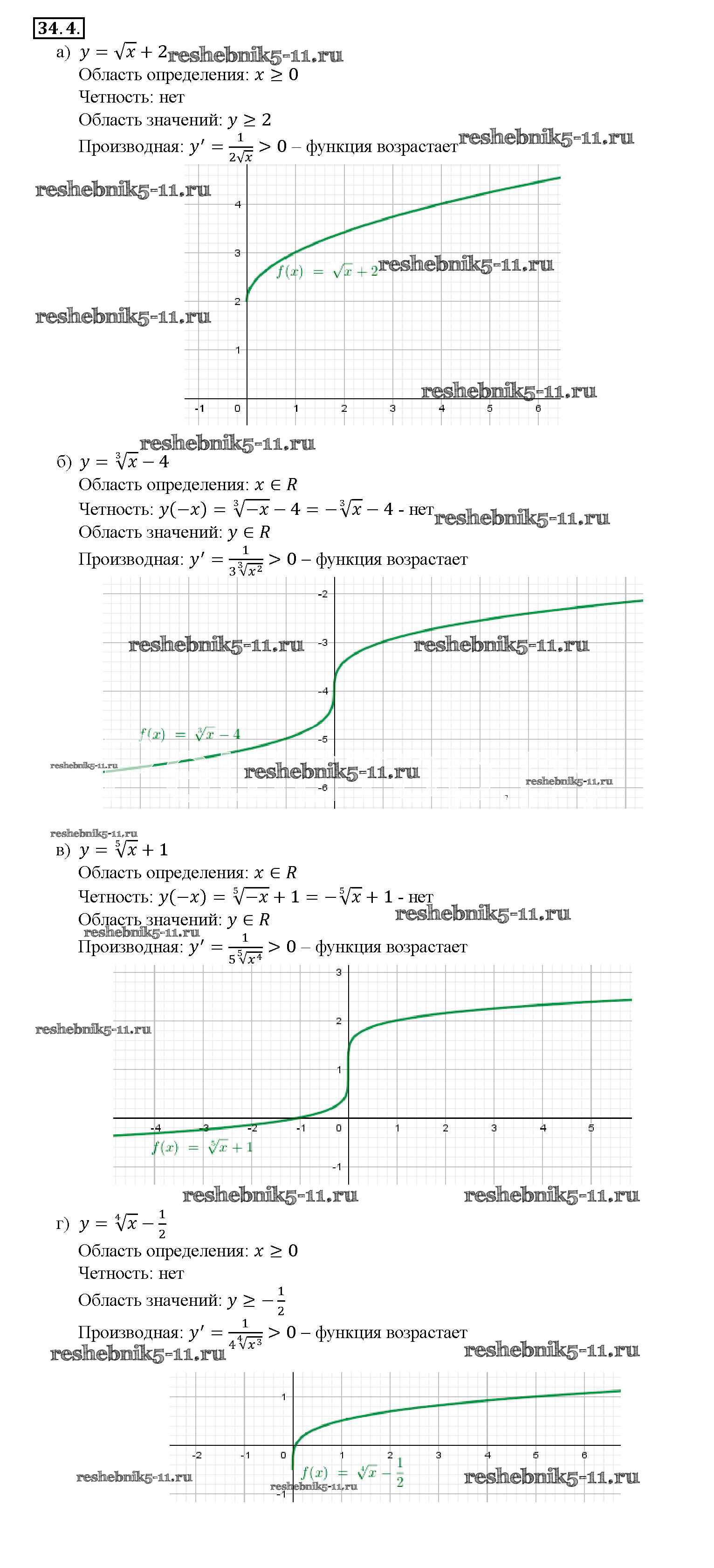 Готовая домашняя работа с ответами по Алгебре за 10, 11 класс Мордкович, Денищева, Корешкова, Мишустина, Семёнов, Тульчинская Задачник Базовый уровень Часть 2 Мнемозина 2015 ФГОС - §34. Функции y = ⁿ√x, их свойства и графики 34. 4