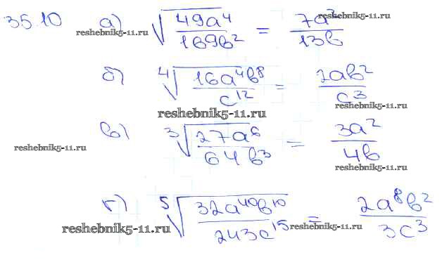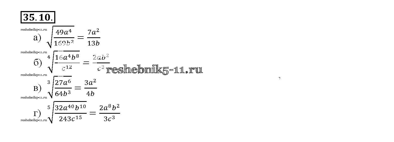 Готовая домашняя работа с ответами по Алгебре за 10, 11 класс Мордкович, Денищева, Корешкова, Мишустина, Семёнов, Тульчинская Задачник Базовый уровень Часть 2 Мнемозина 2015 ФГОС - §35. Свойства корня n-й степени 35. 10