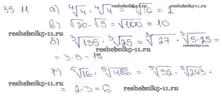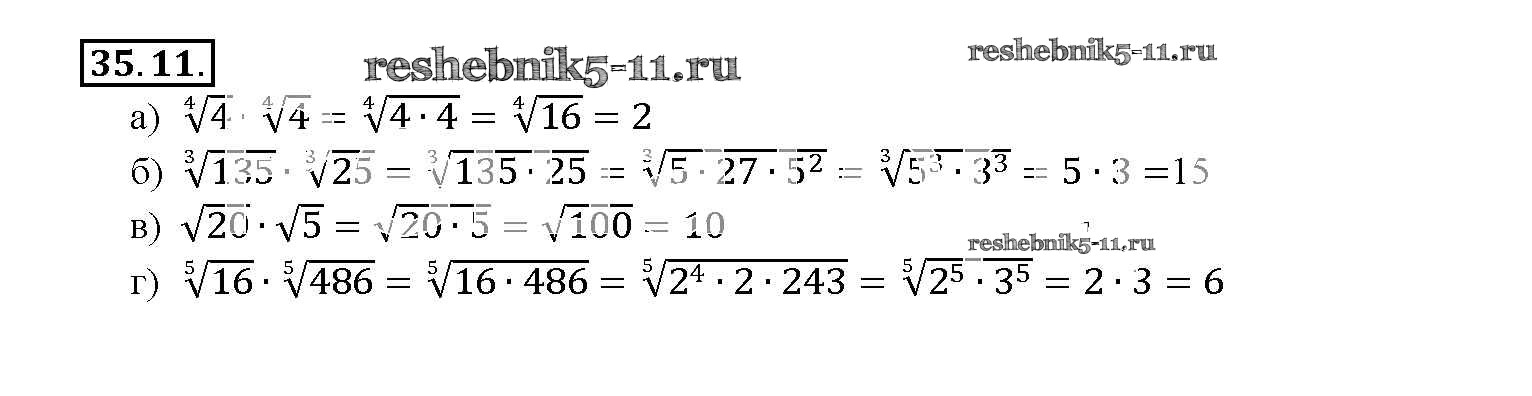 Готовая домашняя работа с ответами по Алгебре за 10, 11 класс Мордкович, Денищева, Корешкова, Мишустина, Семёнов, Тульчинская Задачник Базовый уровень Часть 2 Мнемозина 2015 ФГОС - §35. Свойства корня n-й степени 35. 11