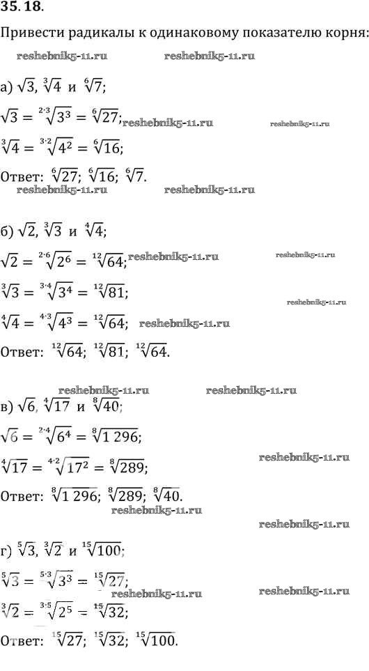Готовая домашняя работа с ответами по Алгебре за 10, 11 класс Мордкович, Денищева, Корешкова, Мишустина, Семёнов, Тульчинская Задачник Базовый уровень Часть 2 Мнемозина 2015 ФГОС - §35. Свойства корня n-й степени 35. 18