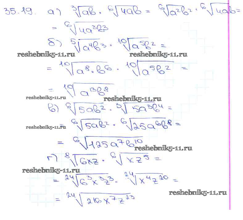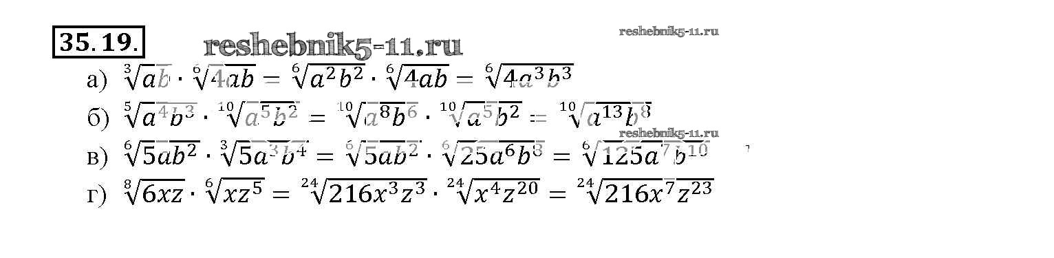 Готовая домашняя работа с ответами по Алгебре за 10, 11 класс Мордкович, Денищева, Корешкова, Мишустина, Семёнов, Тульчинская Задачник Базовый уровень Часть 2 Мнемозина 2015 ФГОС - §35. Свойства корня n-й степени 35. 19