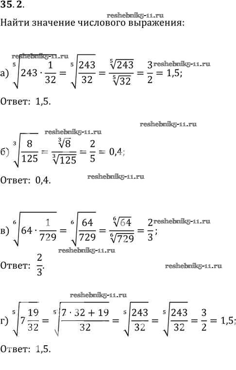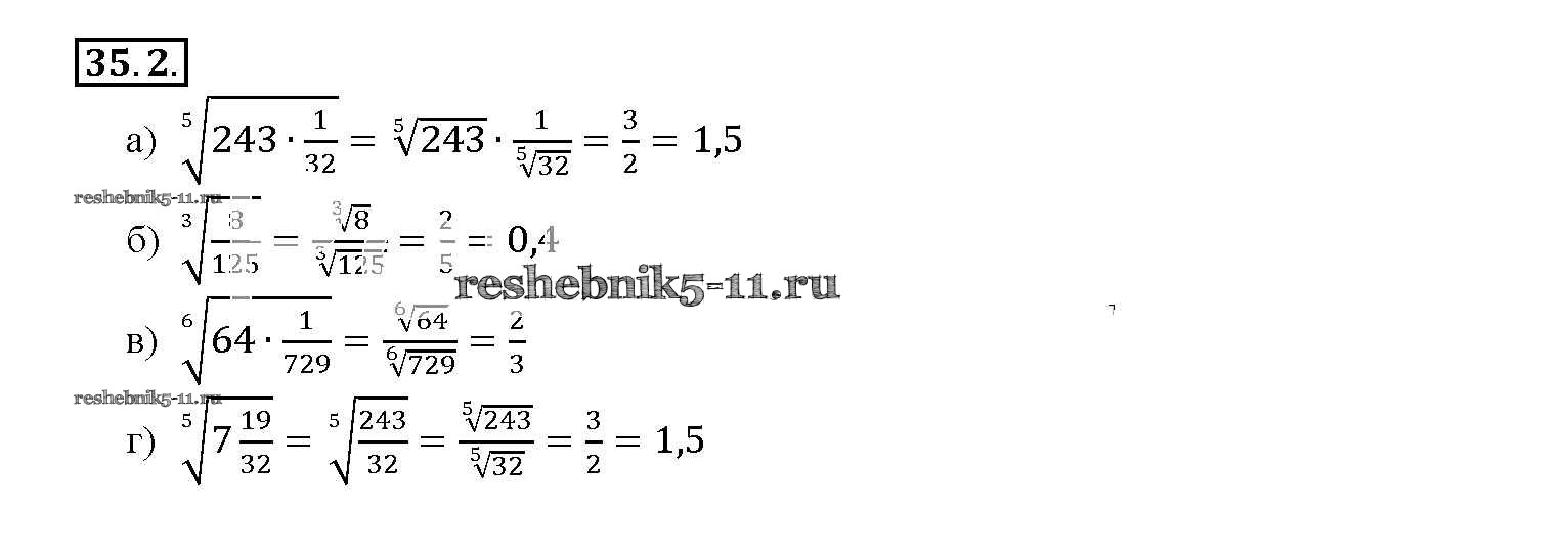 Готовая домашняя работа с ответами по Алгебре за 10, 11 класс Мордкович, Денищева, Корешкова, Мишустина, Семёнов, Тульчинская Задачник Базовый уровень Часть 2 Мнемозина 2015 ФГОС - §35. Свойства корня n-й степени 35. 2