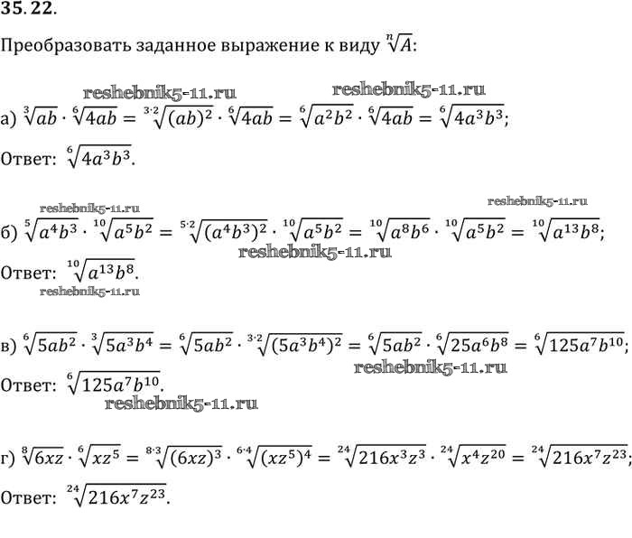 Готовая домашняя работа с ответами по Алгебре за 10, 11 класс Мордкович, Денищева, Корешкова, Мишустина, Семёнов, Тульчинская Задачник Базовый уровень Часть 2 Мнемозина 2015 ФГОС - §35. Свойства корня n-й степени 35. 22