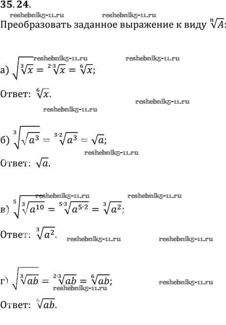 Готовая домашняя работа с ответами по Алгебре за 10, 11 класс Мордкович, Денищева, Корешкова, Мишустина, Семёнов, Тульчинская Задачник Базовый уровень Часть 2 Мнемозина 2015 ФГОС - §35. Свойства корня n-й степени 35. 24