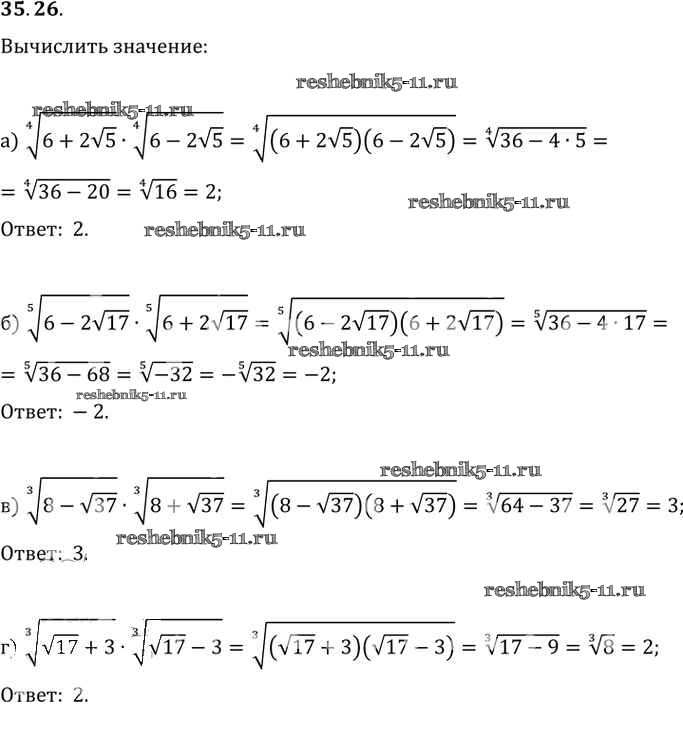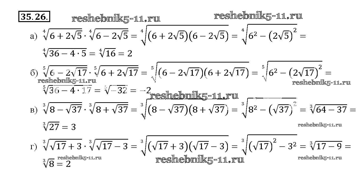 Готовая домашняя работа с ответами по Алгебре за 10, 11 класс Мордкович, Денищева, Корешкова, Мишустина, Семёнов, Тульчинская Задачник Базовый уровень Часть 2 Мнемозина 2015 ФГОС - §35. Свойства корня n-й степени 35. 26