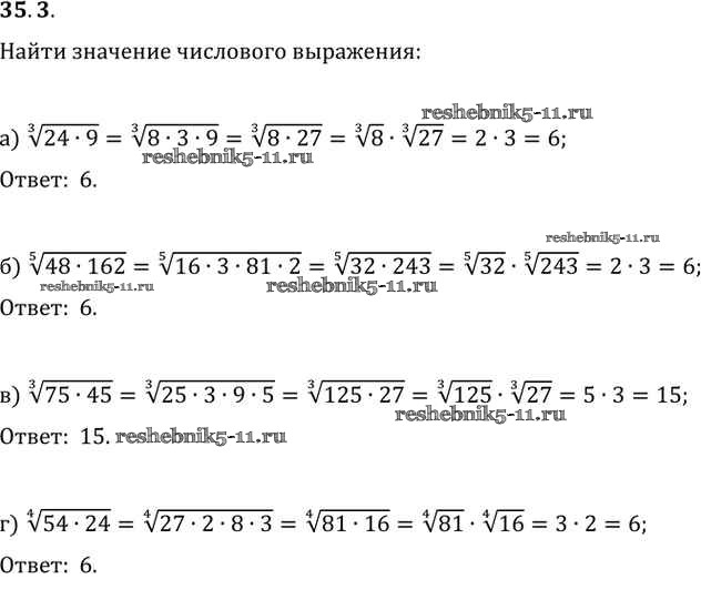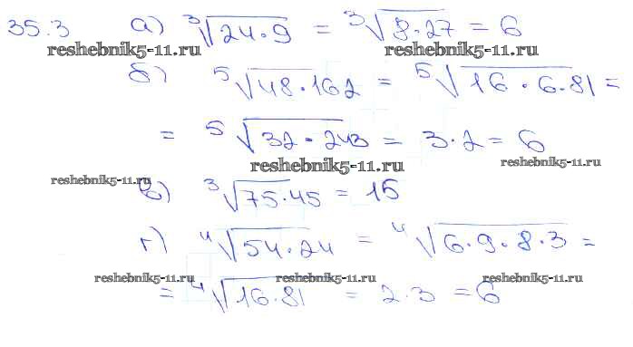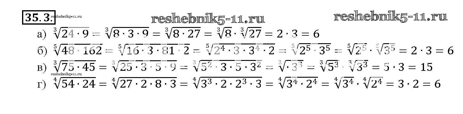 Готовая домашняя работа с ответами по Алгебре за 10, 11 класс Мордкович, Денищева, Корешкова, Мишустина, Семёнов, Тульчинская Задачник Базовый уровень Часть 2 Мнемозина 2015 ФГОС - §35. Свойства корня n-й степени 35. 3