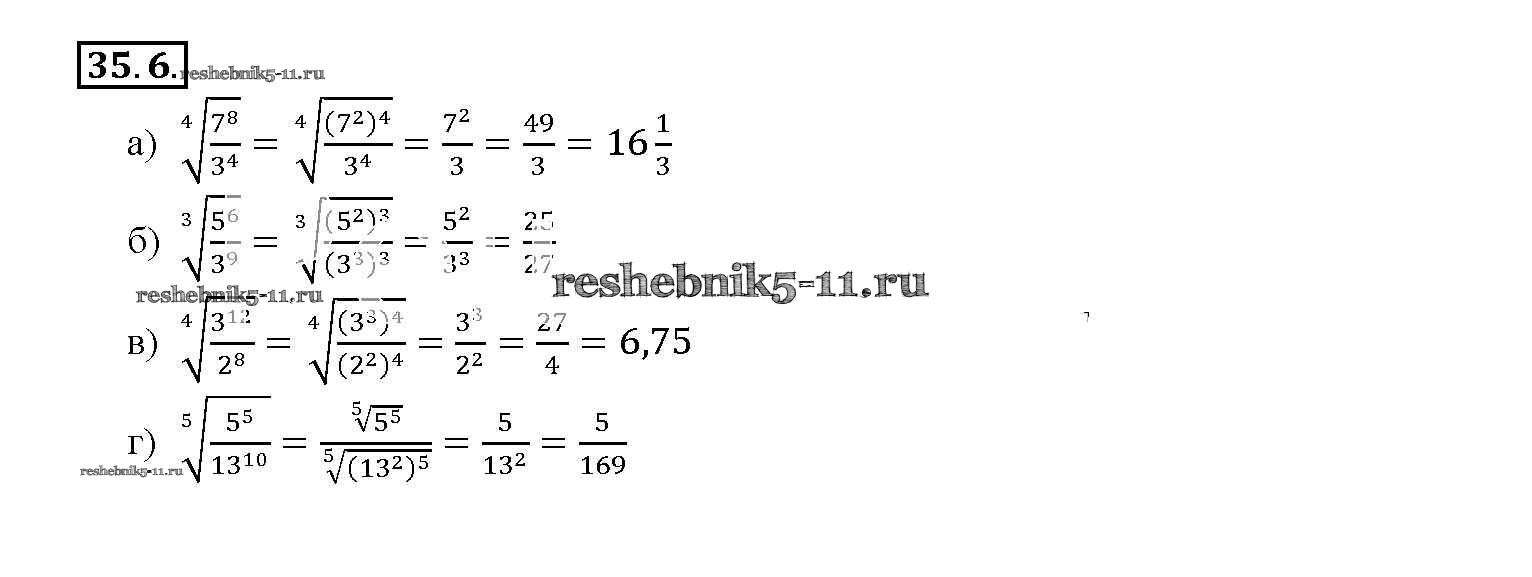 Готовая домашняя работа с ответами по Алгебре за 10, 11 класс Мордкович, Денищева, Корешкова, Мишустина, Семёнов, Тульчинская Задачник Базовый уровень Часть 2 Мнемозина 2015 ФГОС - §35. Свойства корня n-й степени 35. 6