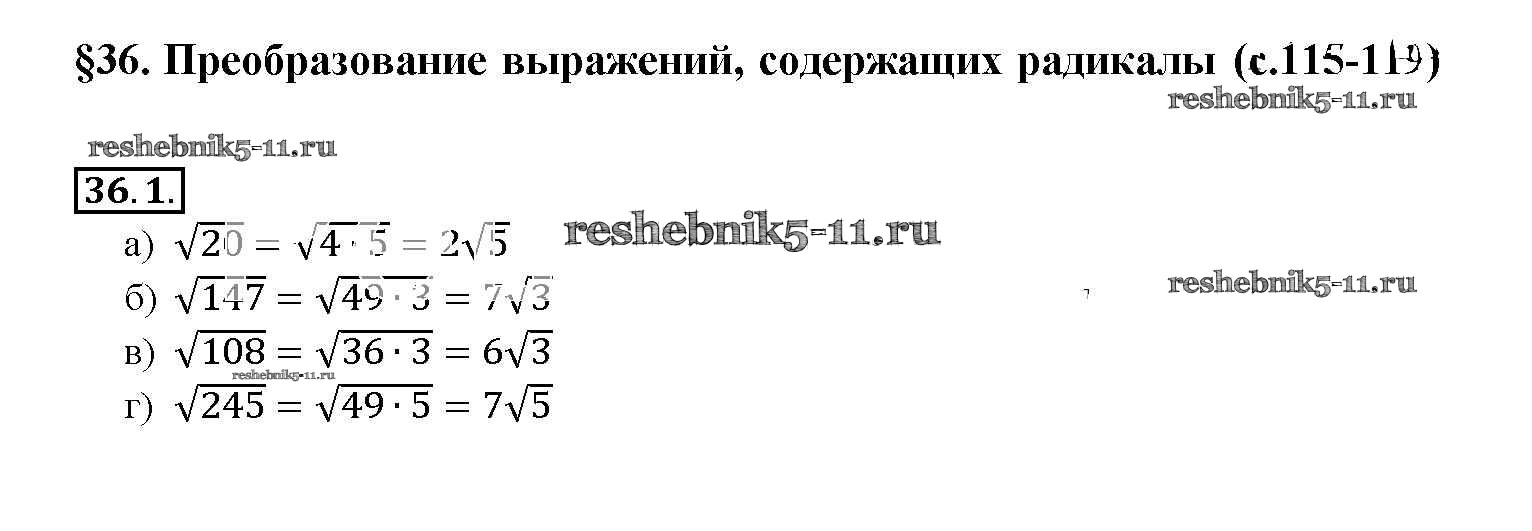 Готовая домашняя работа с ответами по Алгебре за 10, 11 класс Мордкович, Денищева, Корешкова, Мишустина, Семёнов, Тульчинская Задачник Базовый уровень Часть 2 Мнемозина 2015 ФГОС - §36. Преобразование выражений, содержащих радикалы 36. 1