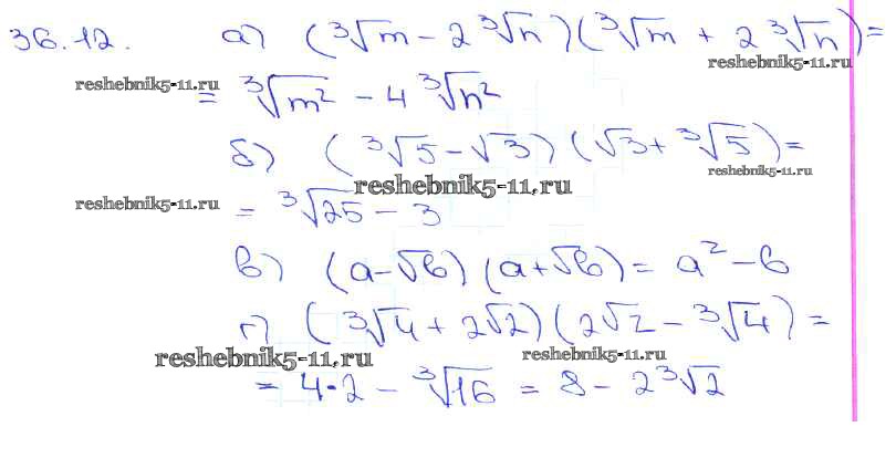 Готовая домашняя работа с ответами по Алгебре за 10, 11 класс Мордкович, Денищева, Корешкова, Мишустина, Семёнов, Тульчинская Задачник Базовый уровень Часть 2 Мнемозина 2015 ФГОС - §36. Преобразование выражений, содержащих радикалы 36. 12