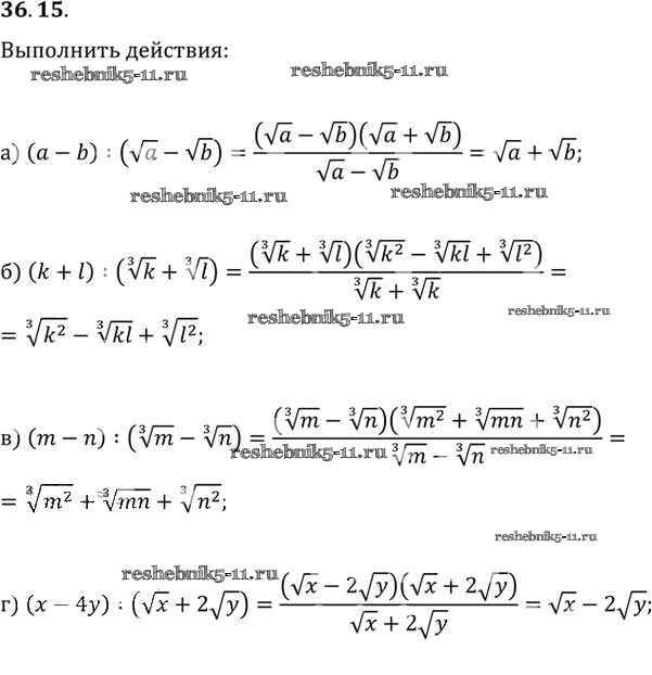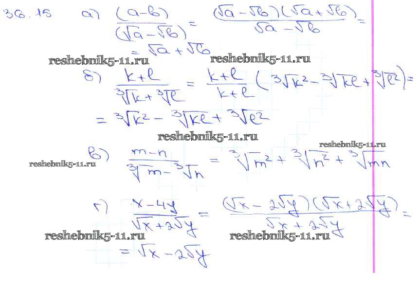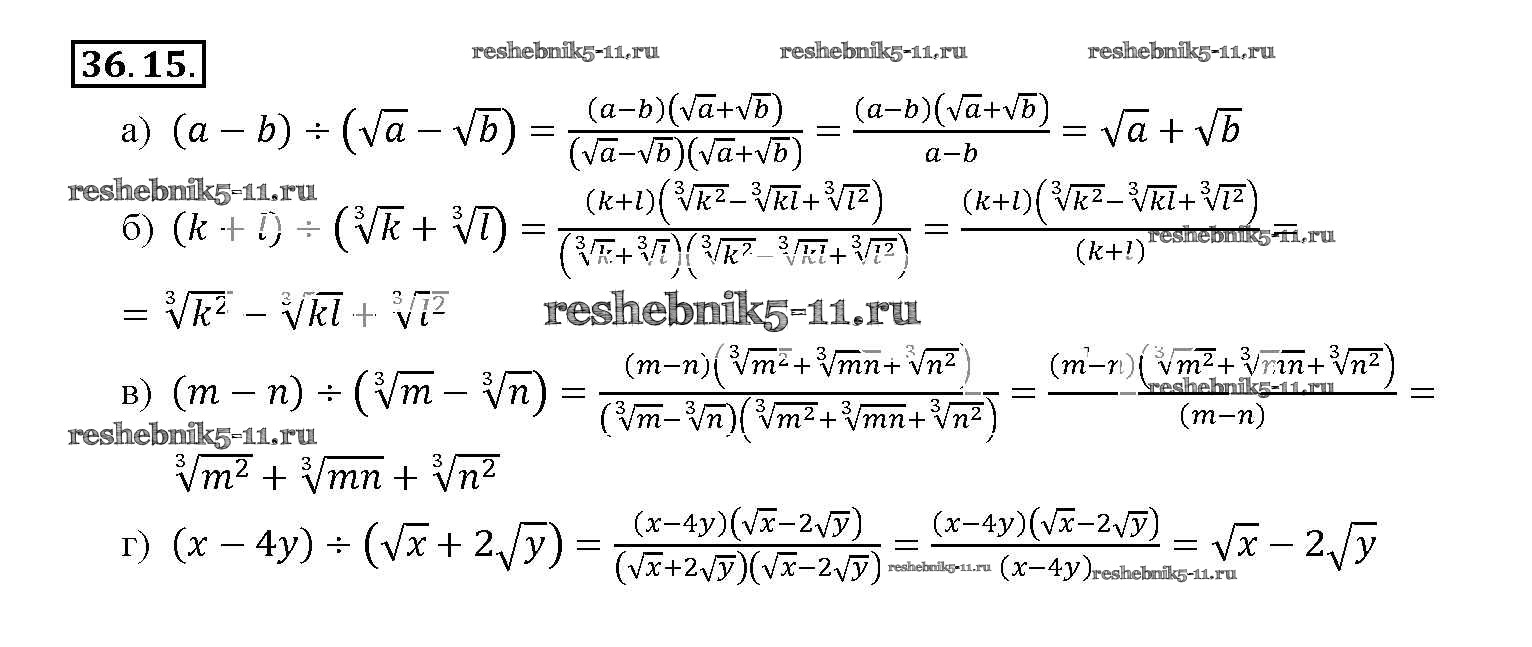 Готовая домашняя работа с ответами по Алгебре за 10, 11 класс Мордкович, Денищева, Корешкова, Мишустина, Семёнов, Тульчинская Задачник Базовый уровень Часть 2 Мнемозина 2015 ФГОС - §36. Преобразование выражений, содержащих радикалы 36. 15