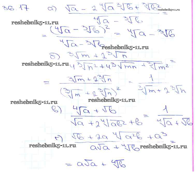 Готовая домашняя работа с ответами по Алгебре за 10, 11 класс Мордкович, Денищева, Корешкова, Мишустина, Семёнов, Тульчинская Задачник Базовый уровень Часть 2 Мнемозина 2015 ФГОС - §36. Преобразование выражений, содержащих радикалы 36. 17
