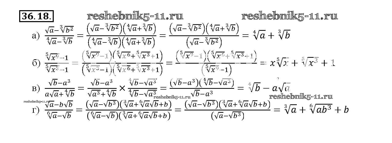 Готовая домашняя работа с ответами по Алгебре за 10, 11 класс Мордкович, Денищева, Корешкова, Мишустина, Семёнов, Тульчинская Задачник Базовый уровень Часть 2 Мнемозина 2015 ФГОС - §36. Преобразование выражений, содержащих радикалы 36. 18