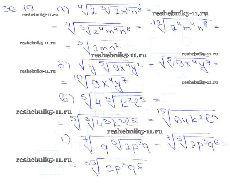 Готовая домашняя работа с ответами по Алгебре за 10, 11 класс Мордкович, Денищева, Корешкова, Мишустина, Семёнов, Тульчинская Задачник Базовый уровень Часть 2 Мнемозина 2015 ФГОС - §36. Преобразование выражений, содержащих радикалы 36. 19