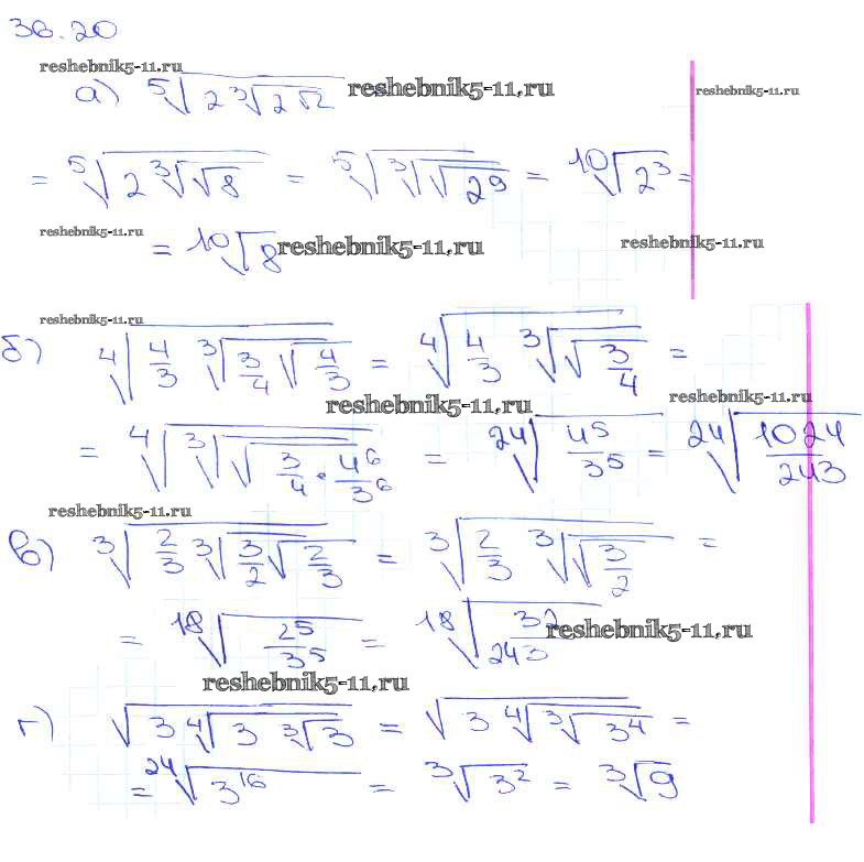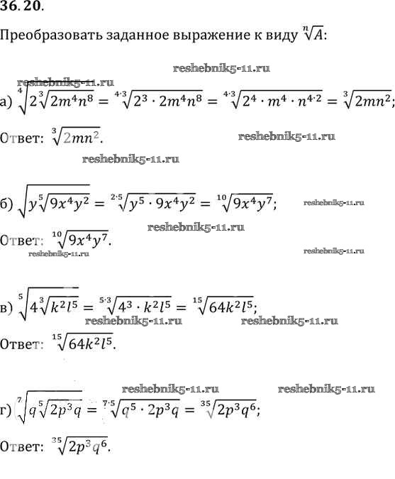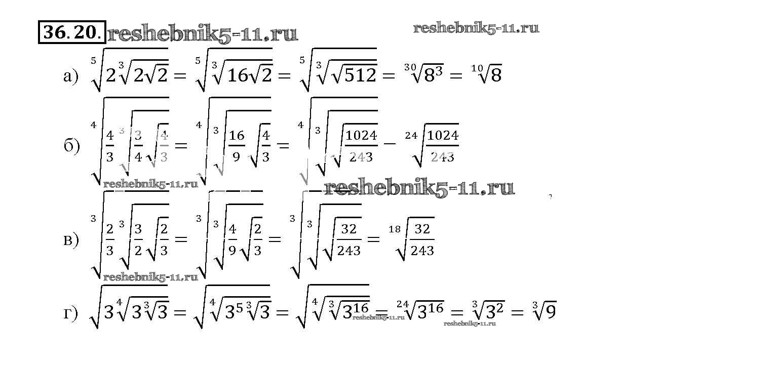 Готовая домашняя работа с ответами по Алгебре за 10, 11 класс Мордкович, Денищева, Корешкова, Мишустина, Семёнов, Тульчинская Задачник Базовый уровень Часть 2 Мнемозина 2015 ФГОС - §36. Преобразование выражений, содержащих радикалы 36. 20