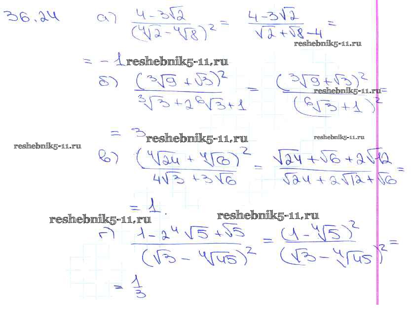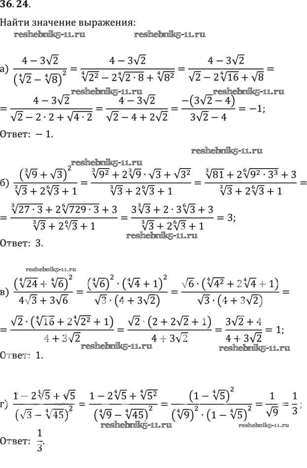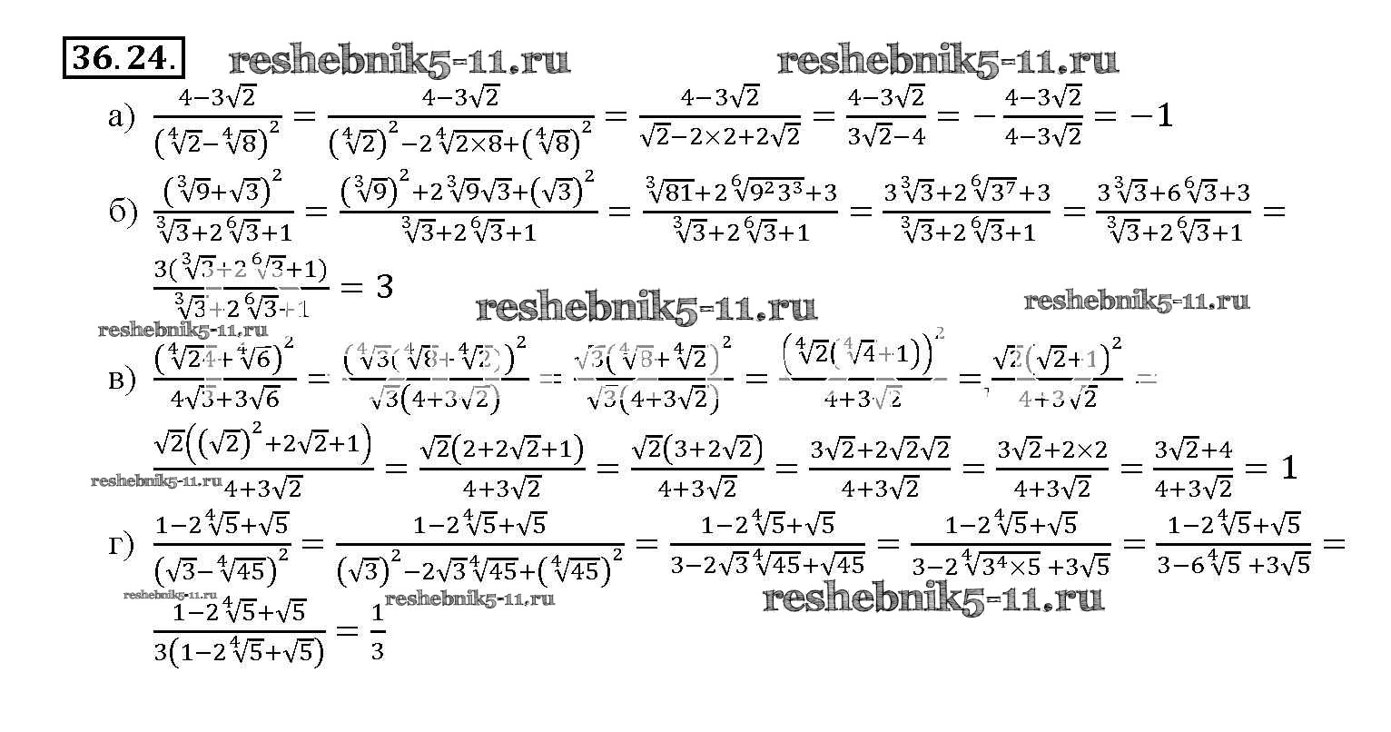 Готовая домашняя работа с ответами по Алгебре за 10, 11 класс Мордкович, Денищева, Корешкова, Мишустина, Семёнов, Тульчинская Задачник Базовый уровень Часть 2 Мнемозина 2015 ФГОС - §36. Преобразование выражений, содержащих радикалы 36. 24
