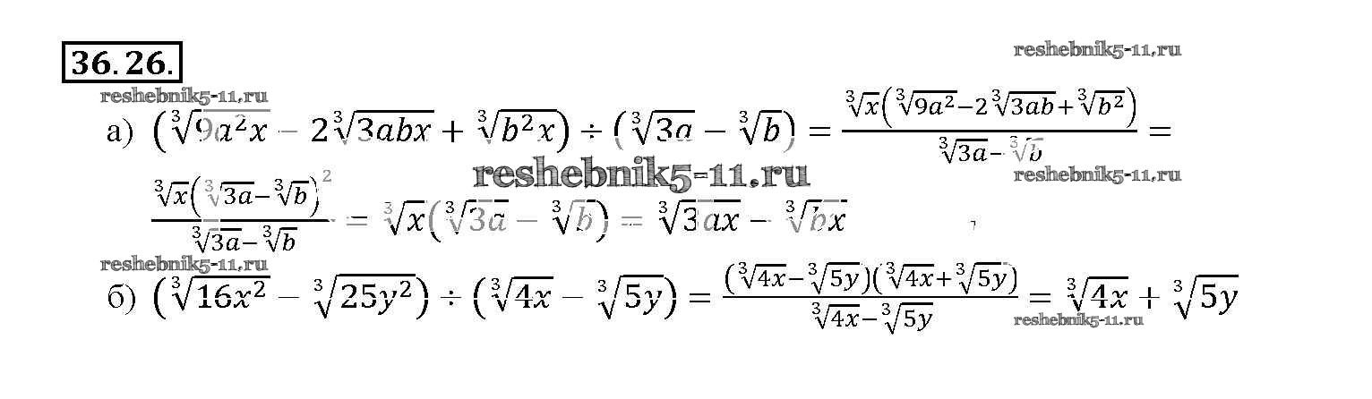 Готовая домашняя работа с ответами по Алгебре за 10, 11 класс Мордкович, Денищева, Корешкова, Мишустина, Семёнов, Тульчинская Задачник Базовый уровень Часть 2 Мнемозина 2015 ФГОС - §36. Преобразование выражений, содержащих радикалы 36. 26