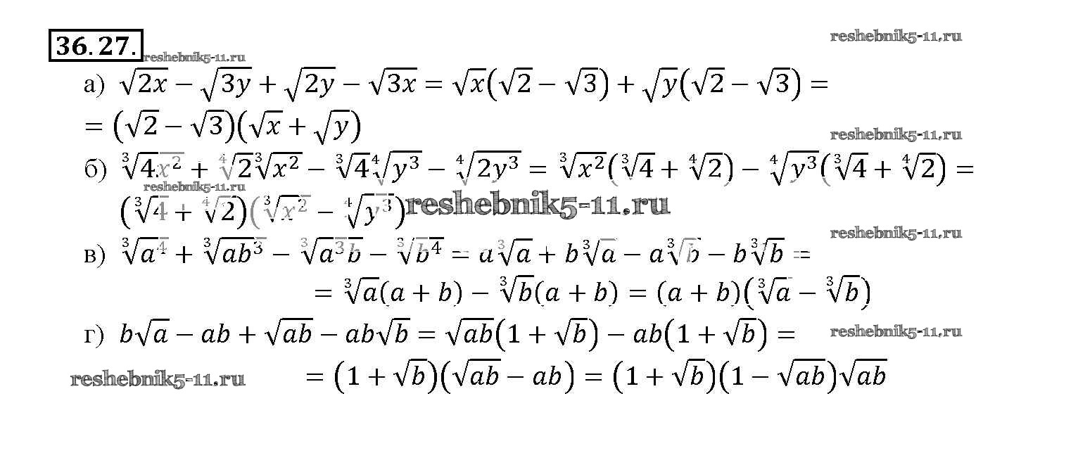 Готовая домашняя работа с ответами по Алгебре за 10, 11 класс Мордкович, Денищева, Корешкова, Мишустина, Семёнов, Тульчинская Задачник Базовый уровень Часть 2 Мнемозина 2015 ФГОС - §36. Преобразование выражений, содержащих радикалы 36. 27