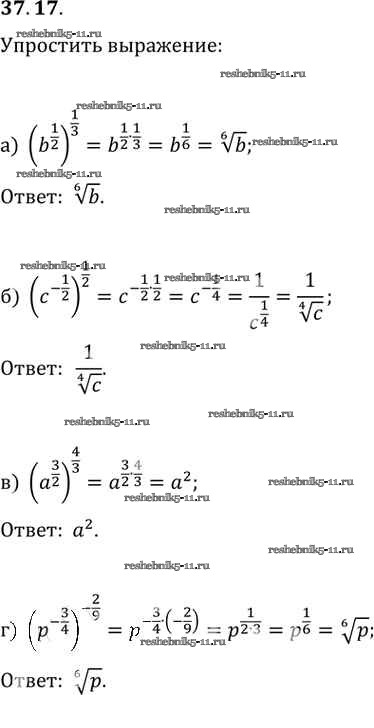 Готовая домашняя работа с ответами по Алгебре за 10, 11 класс Мордкович, Денищева, Корешкова, Мишустина, Семёнов, Тульчинская Задачник Базовый уровень Часть 2 Мнемозина 2015 ФГОС - §37. Обобщение понятия о показателе степени 37. 17