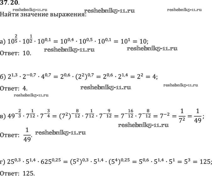 Готовая домашняя работа с ответами по Алгебре за 10, 11 класс Мордкович, Денищева, Корешкова, Мишустина, Семёнов, Тульчинская Задачник Базовый уровень Часть 2 Мнемозина 2015 ФГОС - §37. Обобщение понятия о показателе степени 37. 20