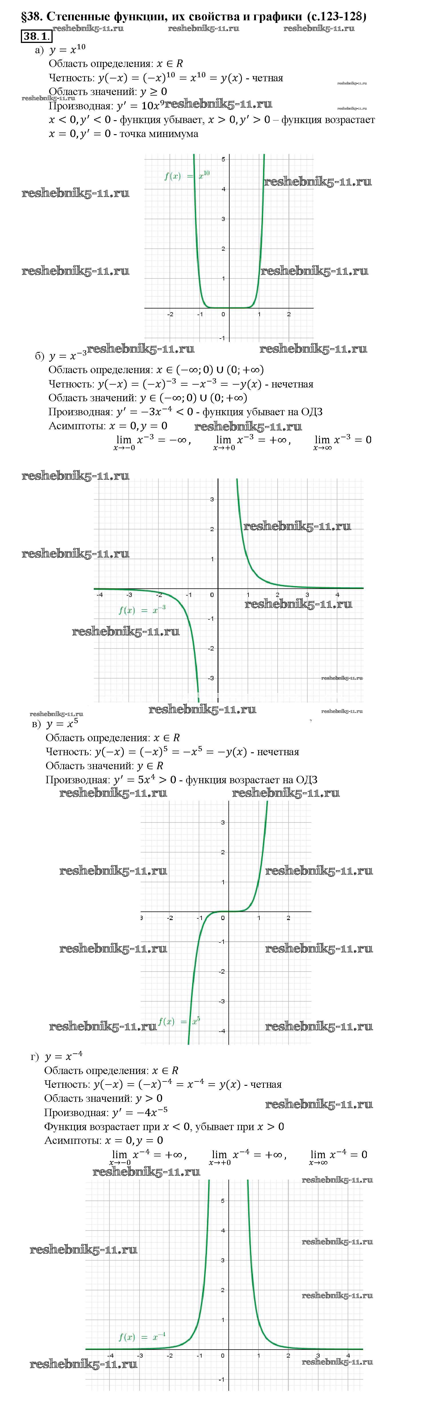 Готовая домашняя работа с ответами по Алгебре за 10, 11 класс Мордкович, Денищева, Корешкова, Мишустина, Семёнов, Тульчинская Задачник Базовый уровень Часть 2 Мнемозина 2015 ФГОС - §38. Степенные функции, их свойства и графики 38. 1