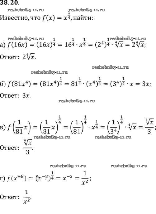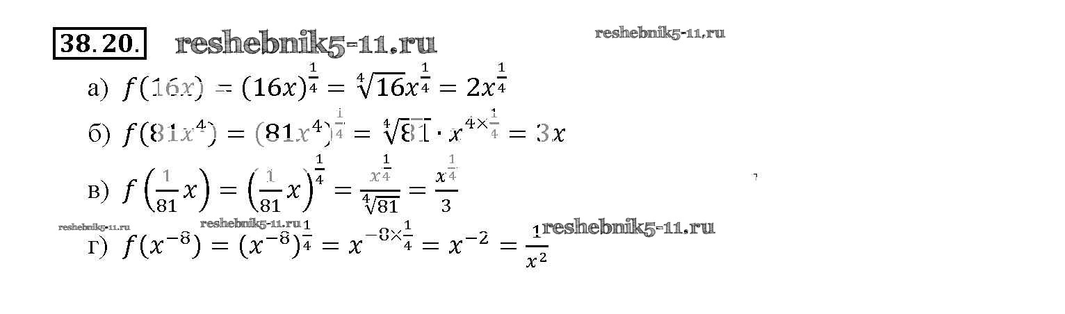 Готовая домашняя работа с ответами по Алгебре за 10, 11 класс Мордкович, Денищева, Корешкова, Мишустина, Семёнов, Тульчинская Задачник Базовый уровень Часть 2 Мнемозина 2015 ФГОС - §38. Степенные функции, их свойства и графики 38. 20