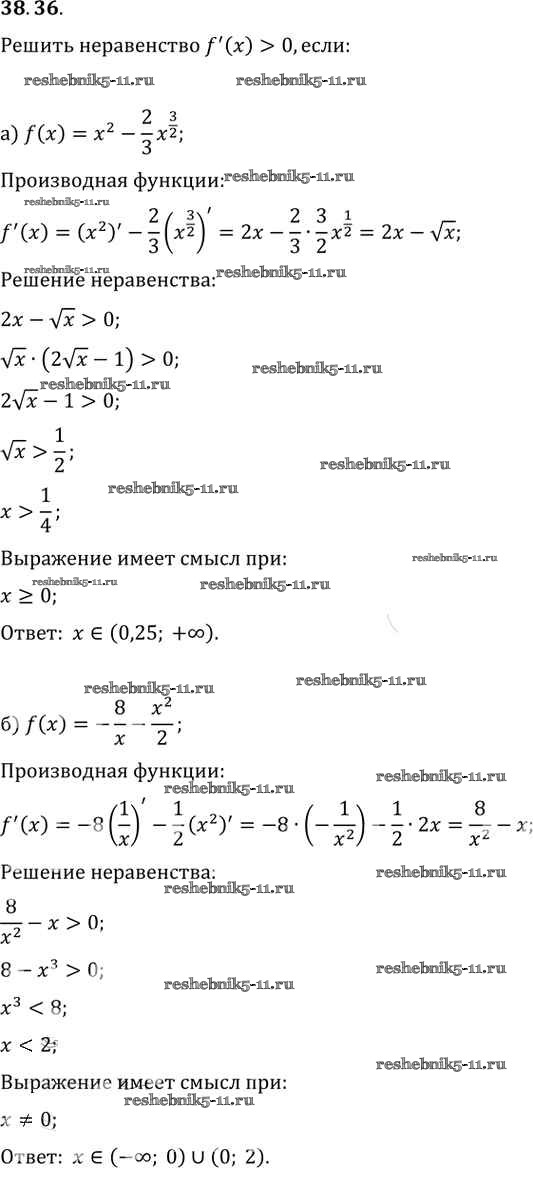 Готовая домашняя работа с ответами по Алгебре за 10, 11 класс Мордкович, Денищева, Корешкова, Мишустина, Семёнов, Тульчинская Задачник Базовый уровень Часть 2 Мнемозина 2015 ФГОС - §38. Степенные функции, их свойства и графики 38. 36