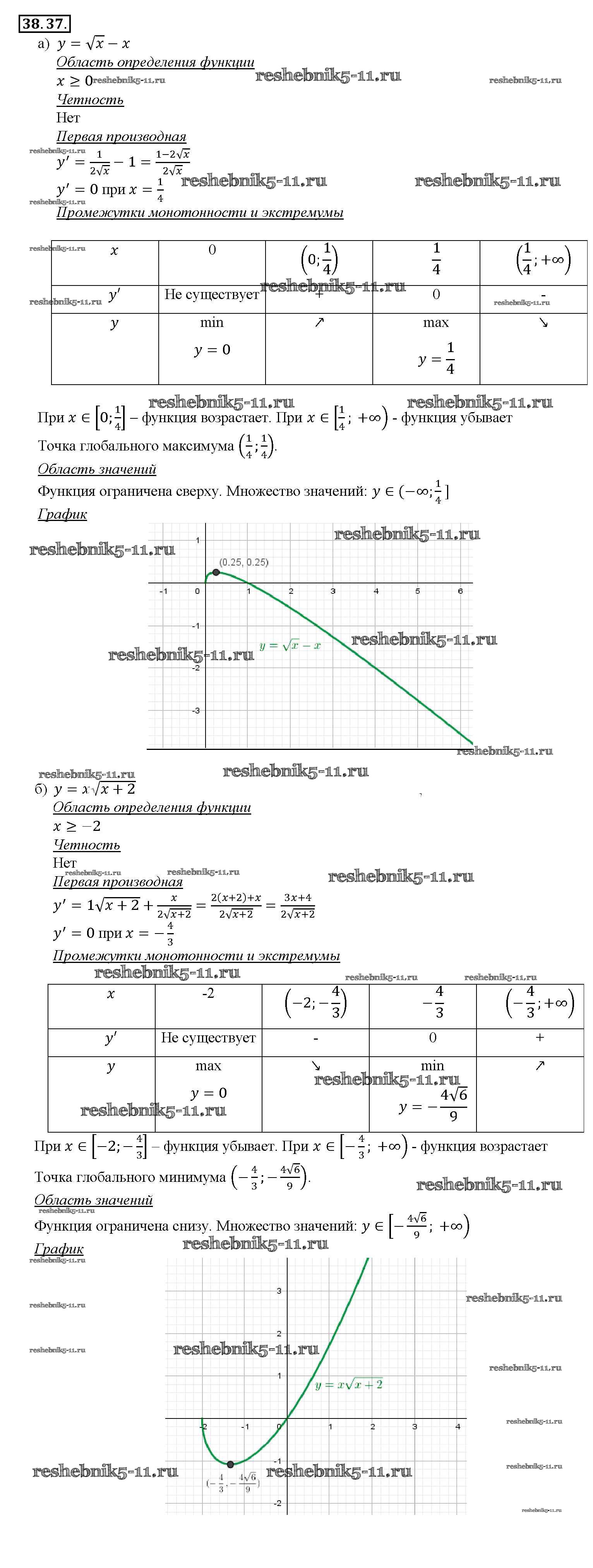 Готовая домашняя работа с ответами по Алгебре за 10, 11 класс Мордкович, Денищева, Корешкова, Мишустина, Семёнов, Тульчинская Задачник Базовый уровень Часть 2 Мнемозина 2015 ФГОС - §38. Степенные функции, их свойства и графики 38. 37