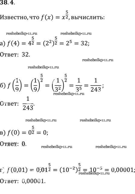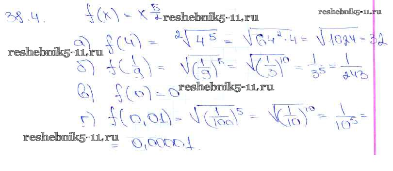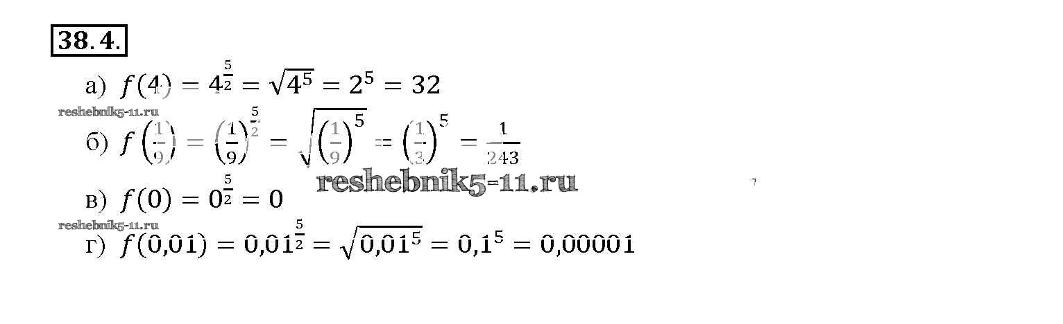 Готовая домашняя работа с ответами по Алгебре за 10, 11 класс Мордкович, Денищева, Корешкова, Мишустина, Семёнов, Тульчинская Задачник Базовый уровень Часть 2 Мнемозина 2015 ФГОС - §38. Степенные функции, их свойства и графики 38. 4