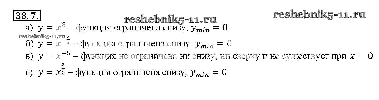 Готовая домашняя работа с ответами по Алгебре за 10, 11 класс Мордкович, Денищева, Корешкова, Мишустина, Семёнов, Тульчинская Задачник Базовый уровень Часть 2 Мнемозина 2015 ФГОС - §38. Степенные функции, их свойства и графики 38. 7