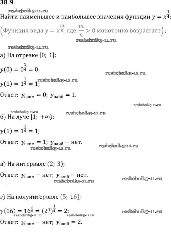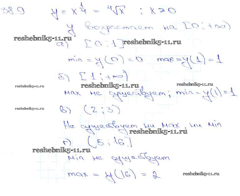Готовая домашняя работа с ответами по Алгебре за 10, 11 класс Мордкович, Денищева, Корешкова, Мишустина, Семёнов, Тульчинская Задачник Базовый уровень Часть 2 Мнемозина 2015 ФГОС - §38. Степенные функции, их свойства и графики 38. 9