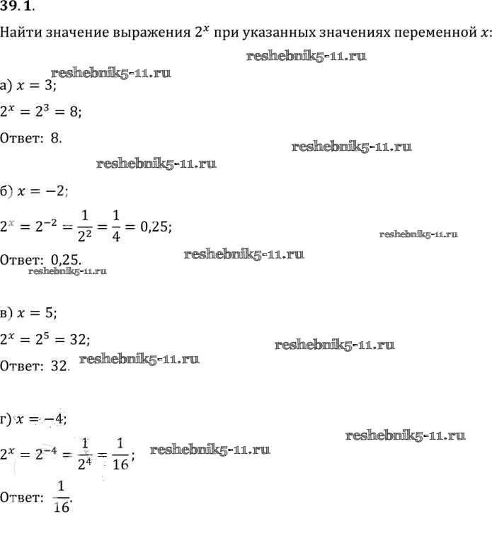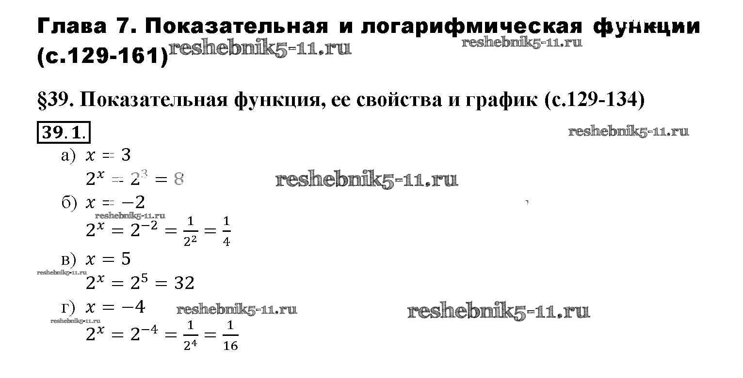 Готовая домашняя работа с ответами по Алгебре за 10, 11 класс Мордкович, Денищева, Корешкова, Мишустина, Семёнов, Тульчинская Задачник Базовый уровень Часть 2 Мнемозина 2015 ФГОС - §39. Показательная функция, ее свойства и график 39. 1