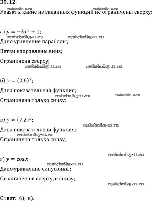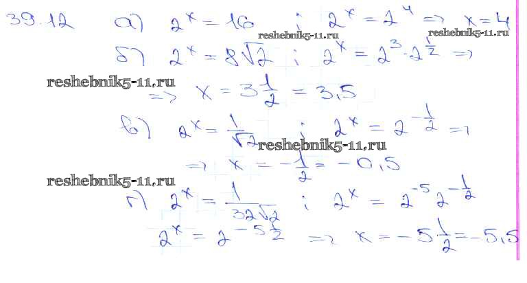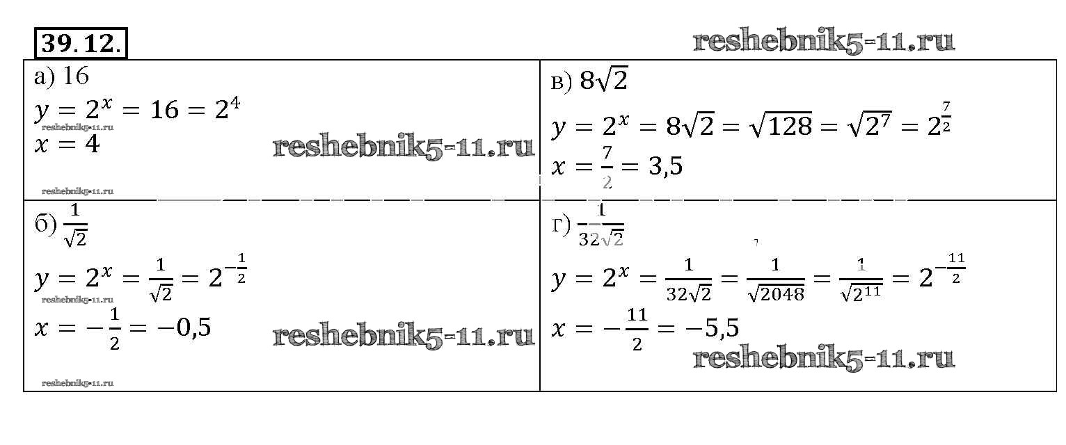 Готовая домашняя работа с ответами по Алгебре за 10, 11 класс Мордкович, Денищева, Корешкова, Мишустина, Семёнов, Тульчинская Задачник Базовый уровень Часть 2 Мнемозина 2015 ФГОС - §39. Показательная функция, ее свойства и график 39. 12