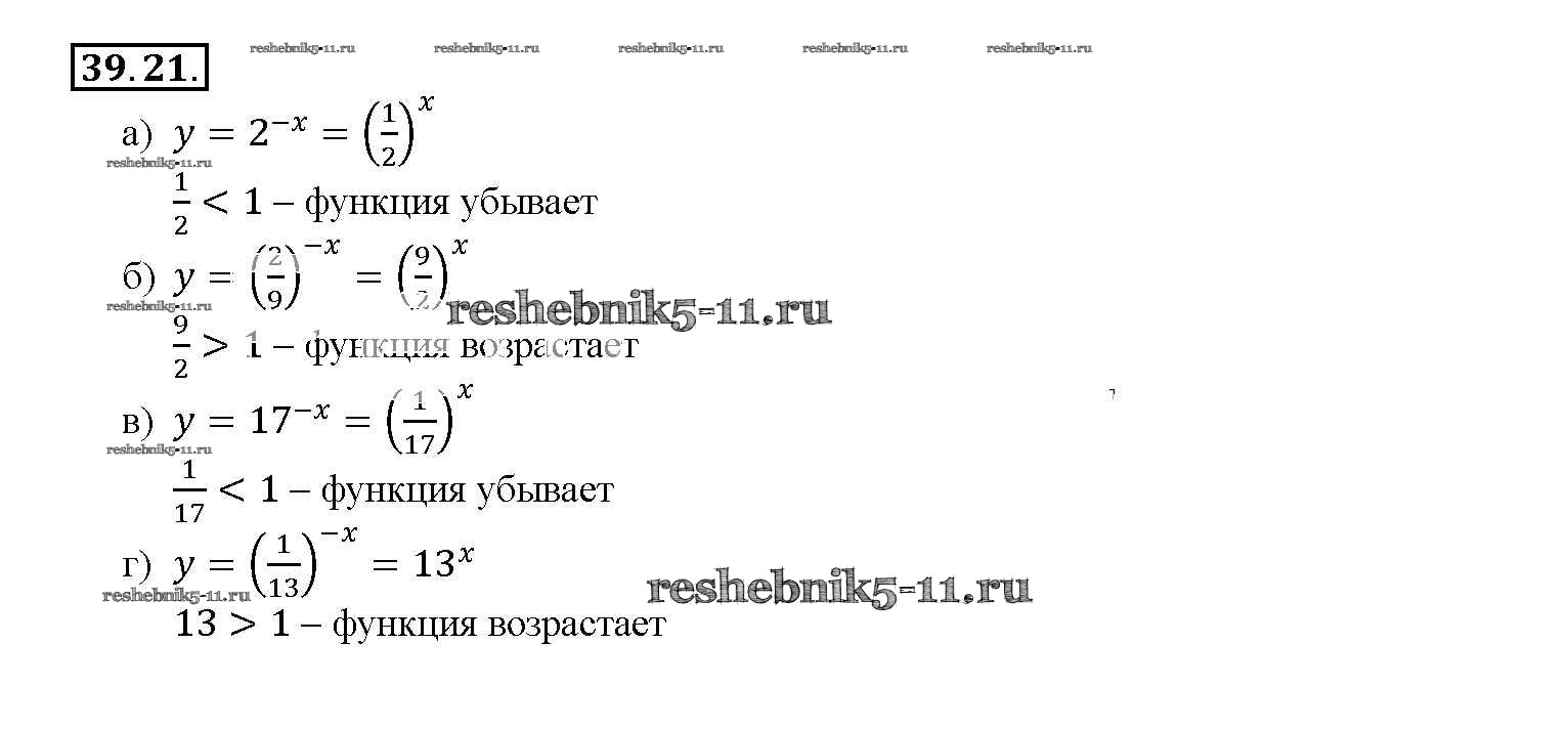 Готовая домашняя работа с ответами по Алгебре за 10, 11 класс Мордкович, Денищева, Корешкова, Мишустина, Семёнов, Тульчинская Задачник Базовый уровень Часть 2 Мнемозина 2015 ФГОС - §39. Показательная функция, ее свойства и график 39. 21