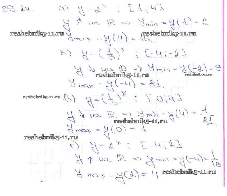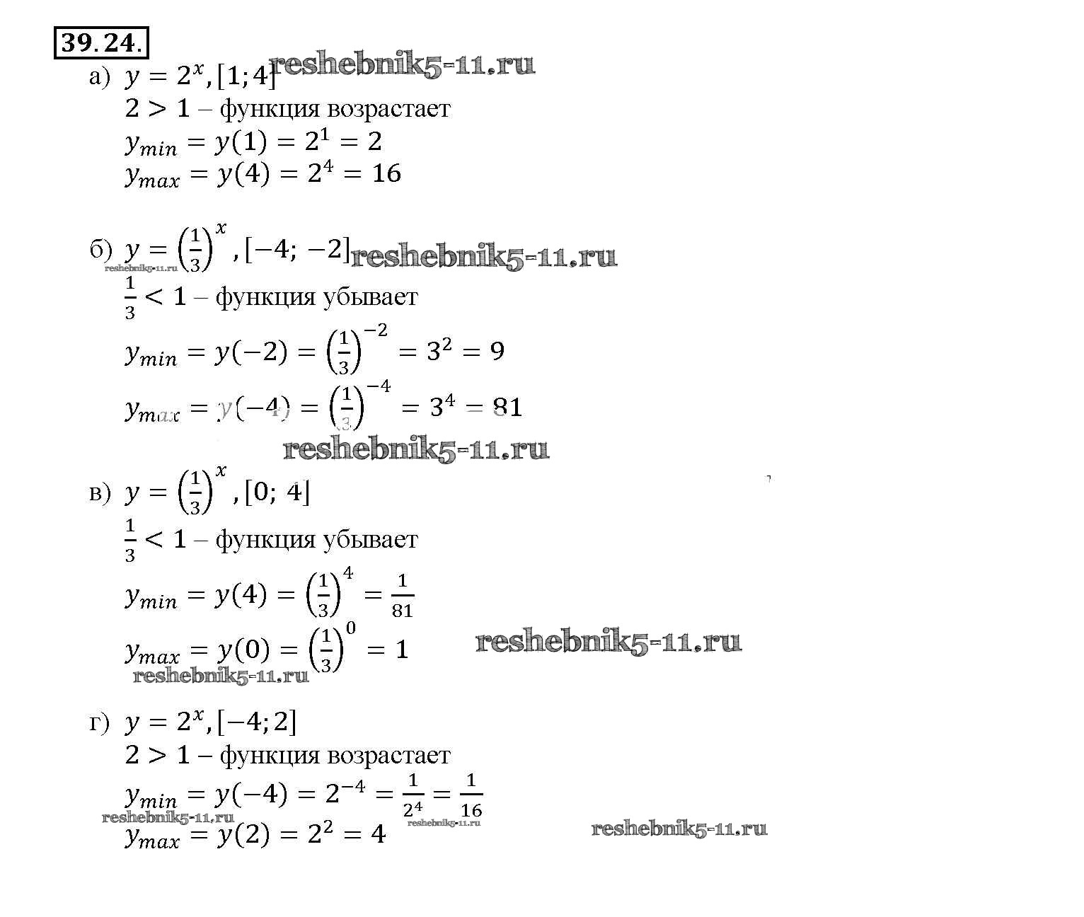 Готовая домашняя работа с ответами по Алгебре за 10, 11 класс Мордкович, Денищева, Корешкова, Мишустина, Семёнов, Тульчинская Задачник Базовый уровень Часть 2 Мнемозина 2015 ФГОС - §39. Показательная функция, ее свойства и график 39. 24